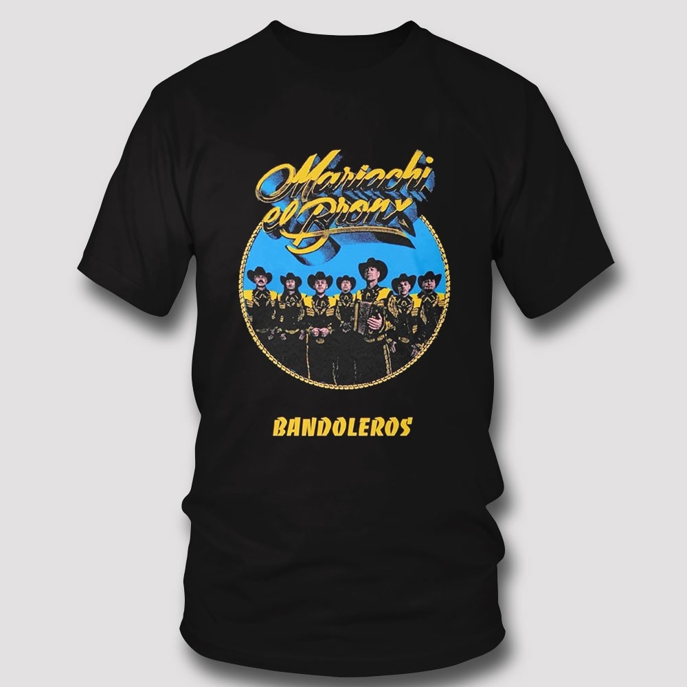 Dive into a unique fusion of urban grit and festive tradition with this “Bandoleros” tribute. Inspired by the spirit of independent music and the raw energy of the Bronx, the design features a stylized collage of characters in traditional mariachi attire, reimagined with an alternative, hardcore edge. The “Mariachi El Bronx” inspired logo sits proudly at the top in a shimmering gold and red script, while the bold “BANDOLEROS” title anchors the bottom, signifying a brotherhood of rhythm and rebellion. The artwork uses a rich color palette of sunset oranges, deep blues, and desert yellows, creating a visual that feels both nostalgic and cutting-edge. Printed on a soft-wash, mid-weight black tee, this garment provides superior comfort and a relaxed silhouette perfect for late-night gigs or casual street style. The graphics are rendered with professional-grade precision, ensuring every instrument and shadow is captured in lifelike detail. This is more than just a band shirt; it’s a celebration of cross-cultural artistic movements and the sound of the streets. Stand out with a piece that honors the heritage of the “Bandoleros” while maintaining an unapologetically modern aesthetic. Join the ranks of the rhythmic rebels—purchase the Thebronxxx Bandoleros Tee right now and feel the beat!.