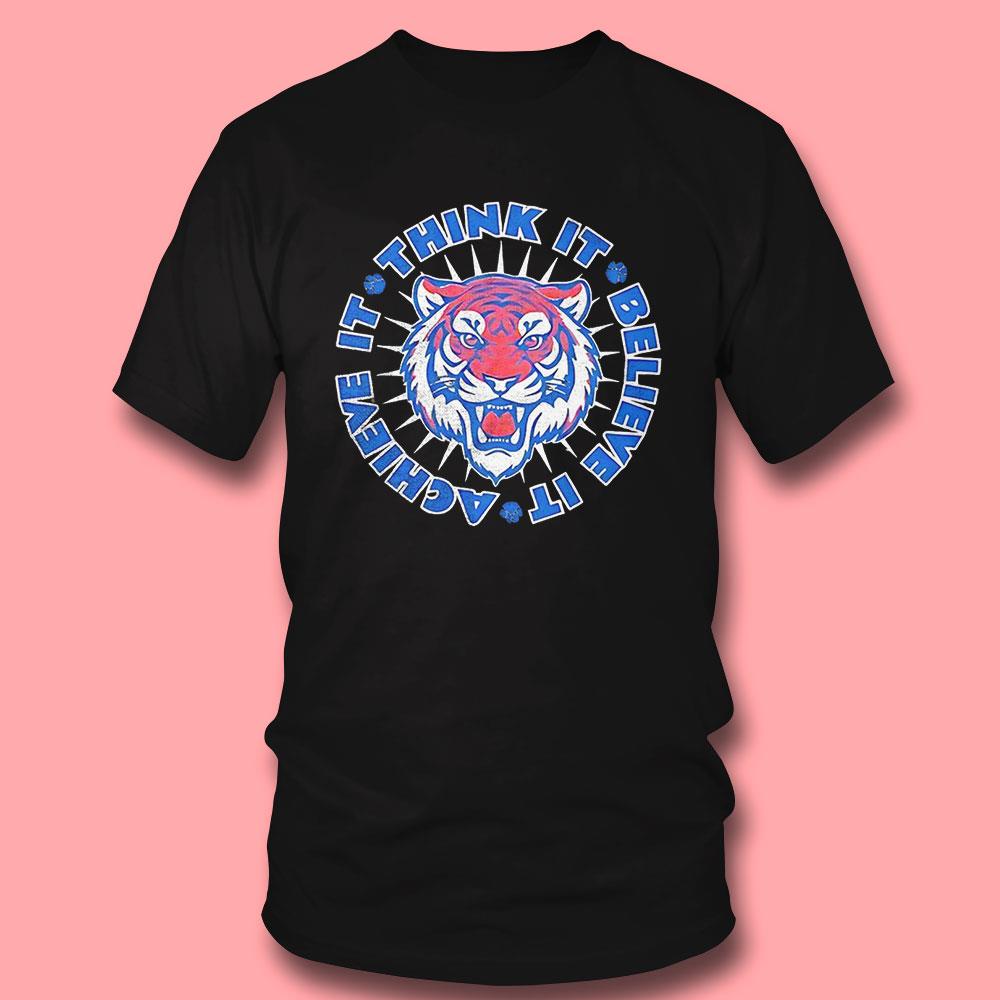 The design features the iconic tiger, symbolizing strength, courage, and tenacity. When you wear this shirt, you’re not only showcasing your style but also reminding yourself and those around you of the importance of mindset in achieving greatness. The words “Achieve It,” “Think It,” and “Believe” serve as daily affirmations, inspiring you to take action towards your goals.