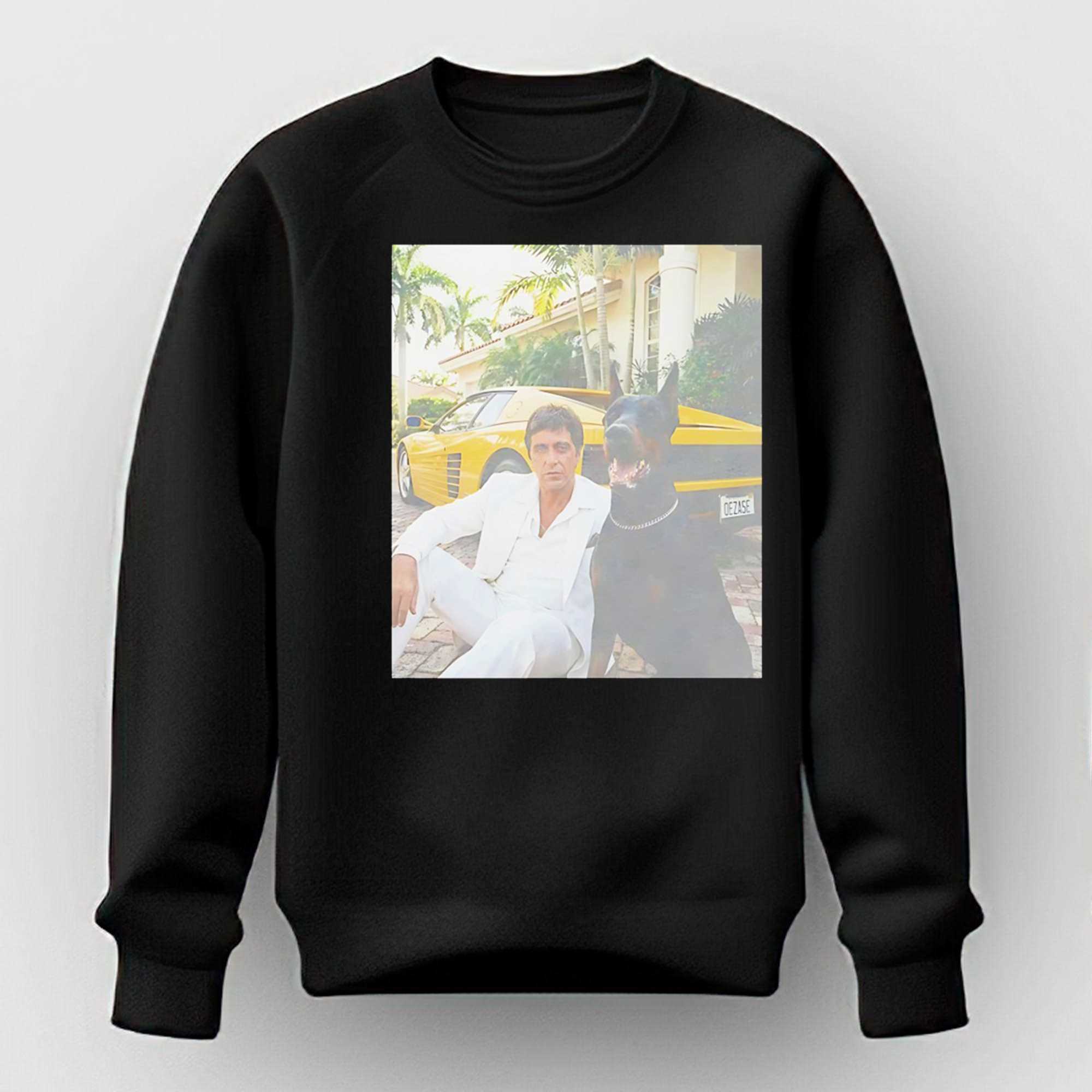 Pay homage to the ultimate cinematic anti-hero with a design that is as iconic as the film itself. The Tony Montana His Dog Tribute To Scarface Tee features a stunning, high-definition graphic of Al Pacino in his legendary role, accompanied by his loyal canine companion. The design is rendered in a gritty, high-contrast style that captures the ambition and the tragedy of the American dream gone wrong. With “Tony Montana” and “The World is Yours” branding, this shirt is a masterclass in movie memorabilia. It’s an absolute must-have for fans of Brian De Palma’s masterpiece and those who value elite-level cinematic art. The artwork captures the sheer charisma and the relentless drive of the character, making it a powerful statement piece for any wardrobe. Set on a premium black cotton tee, the white and grey tones of the portrait pop with professional intensity. The shirt is crafted from ultra-soft, 100% ringspun cotton, providing a luxurious feel and a breathable fit that is perfect for a night out or just showing off your film knowledge. It celebrates a role that changed the landscape of Hollywood and continues to influence pop culture today. Don’t be a “cock-a-roach”—stand out with a look that is truly legendary. Secure your place at the top and buy the Tony Montana His Dog Tribute To Scarface Tee today!. T-shirt !