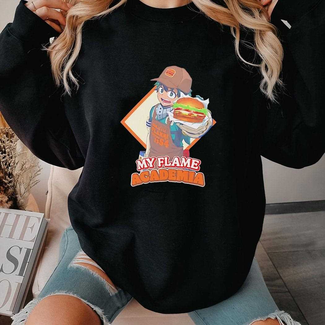 Ignite your style with this tasty crossover—order the Top Deku Burger King My Flame Academia Shirt now!. T-shirt !