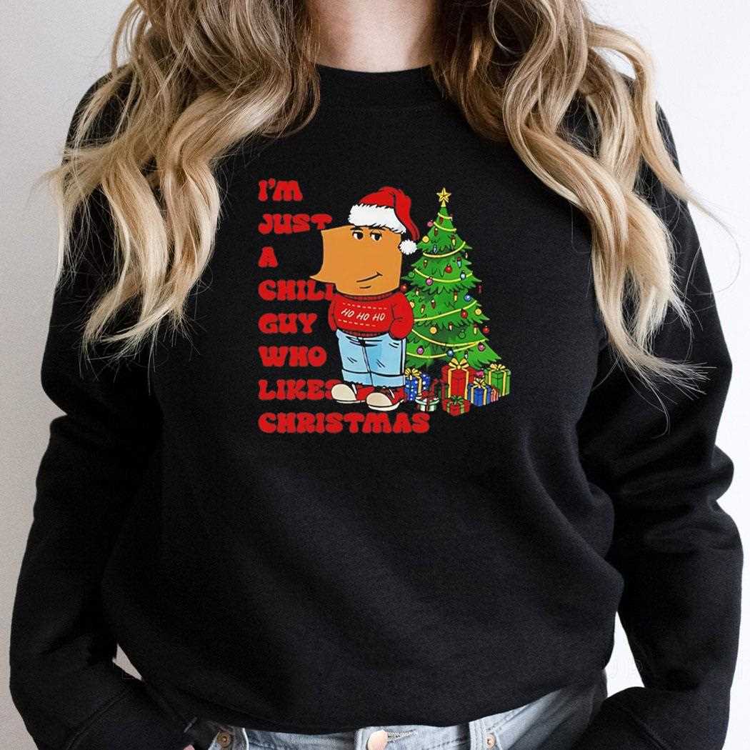 Embrace the viral energy of the “Chill Guy” meme with a festive twist. This design features the anthropomorphic character known for his relaxed demeanor, now decked out in a Santa hat and a cozy red sweater. He stands with hands in pockets, radiating unbothered energy. The text “I’M JUST A CHILL GUY WHO LIKES CHRISTMAS” surrounds him in a playful, holiday-themed font. This shirt perfectly captures the mood of wanting to enjoy the holidays without the stress, combining internet culture with seasonal cheer.