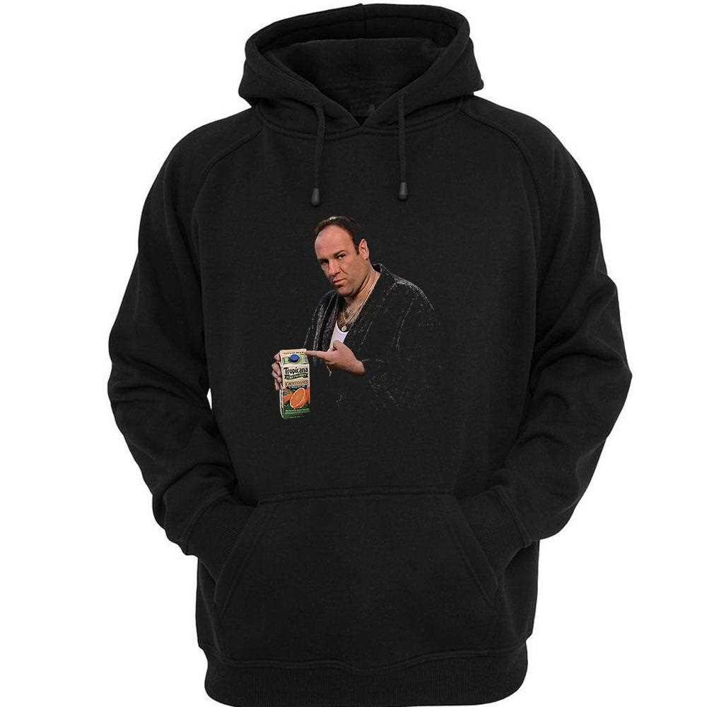 Savor the unexpected blend of mobster cool and everyday refreshment with the unique Tropicana Tony Soprano’s Juice T-Shirt. This ingenious design creates a clever, humorous, and surprisingly stylish fusion between the legendary mob boss Tony Soprano and the wholesome image of Tropicana juice. Imagine the iconic Tropicana logo, reimagined with a subtle nod to Tony Soprano—perhaps a silhouette of his unmistakable figure integrated into the design, or a clever play on words that rebrands the juice as “Tony’s” with a distinct Sopranos twist. This graphic is a testament to the show’s lasting cultural impact and its ability to inspire clever, pop-culture-savvy interpretations. It’s a witty visual pun that speaks to fans who appreciate both the show’s dark humor and its indelible mark on television history. The artwork is clean, smart, and instantly amusing, making it a guaranteed conversation starter. Printed on a high-quality, soft black cotton t-shirt, this garment offers exceptional comfort and a sleek aesthetic. The dark background perfectly complements the vibrant colors of the Tropicana-inspired design, ensuring it stands out with a playful yet sophisticated flair. The print is durable and long-lasting, resisting fading and cracking, so your unique tribute remains fresh and vibrant through countless wears. This t-shirt is an absolute must-have for The Sopranos fans, lovers of clever pop culture references, or anyone who enjoys apparel with a strong sense of humor and originality. It’s perfect for casual wear, fan gatherings, or just adding a touch of unexpected wit to your daily wardrobe.