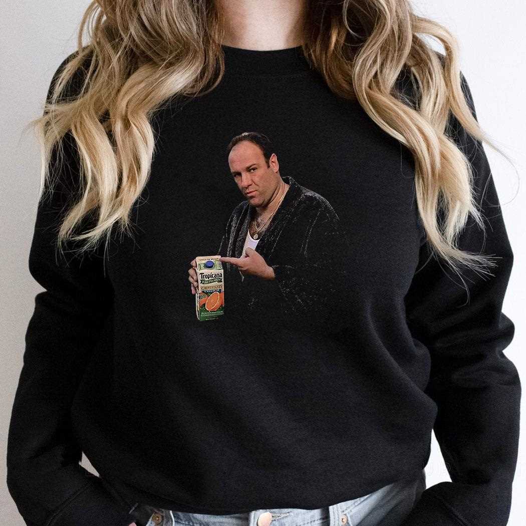 Quench Your Thirst for Style with the Tropicana Tony Soprano’s Juice T-Shirt! Get yours now and enjoy a taste of genius!. T-shirt !