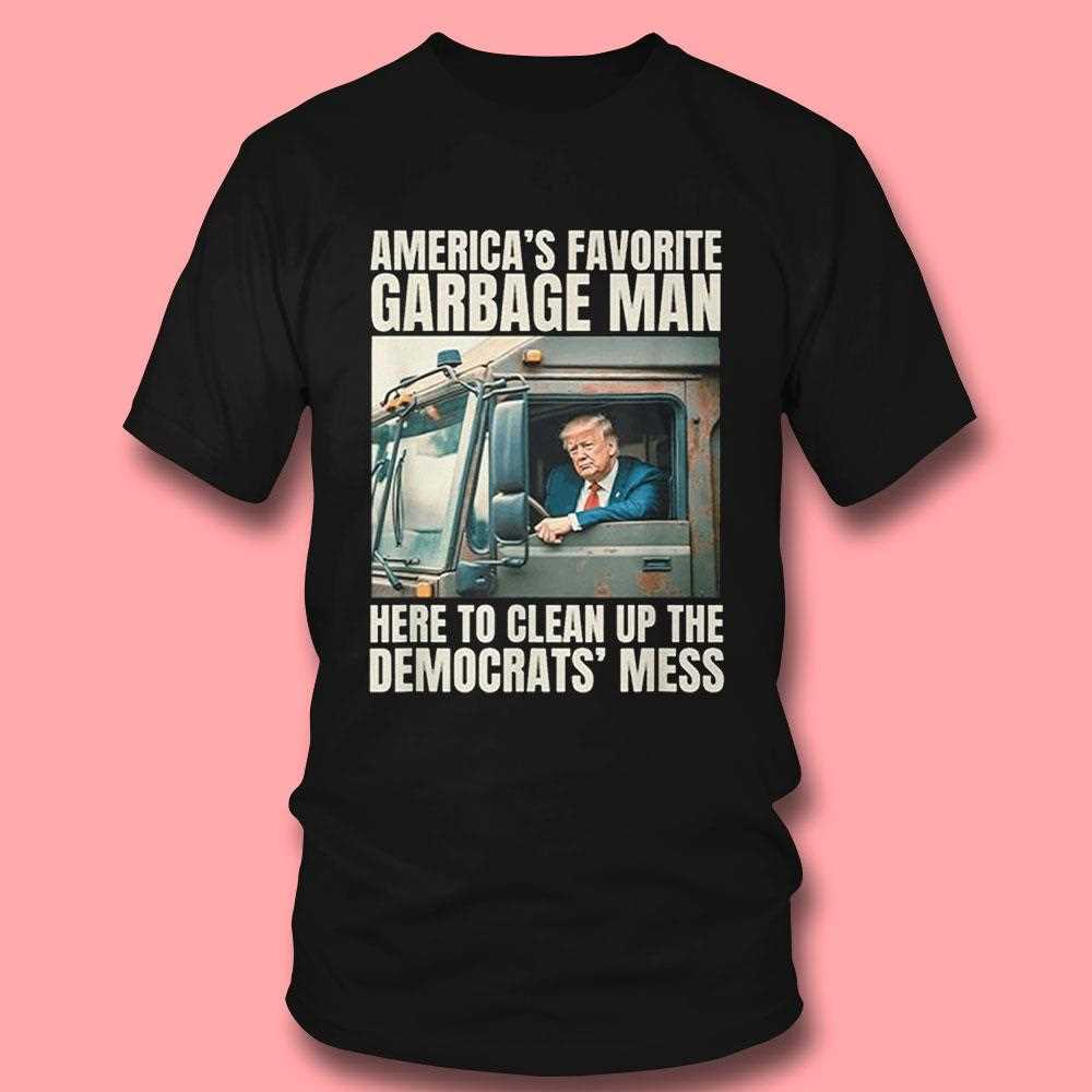 Join the movement and wear your pride on your sleeve—literally! The “Trump America’s Favorite Garbage Man Here To Clean Up The Democrats Mess Shirt” is not just apparel; it’s a declaration of intent to reclaim America from what many see as chaos and mismanagement. Don’t miss out on this opportunity to showcase your beliefs with style!.