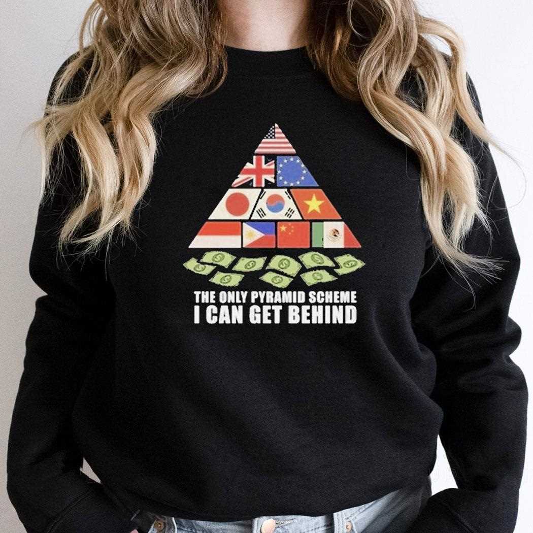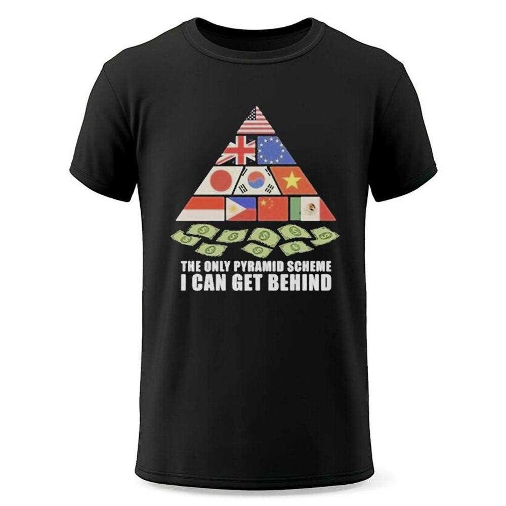 For the person who knows that the only thing better than a good trade deal is a good joke, this is your new favorite shirt. The Trump The Only Pyramid Scheme I Can Get Behind Tariff Scheme Flags Shirt is a legendary piece of political satire, and we’ve made sure its quality is as high as the tariffs themselves. Printed on a durable, yet comfortable, 100% cotton T-shirt, it’s built to last. Get yours now!. T-shirt !