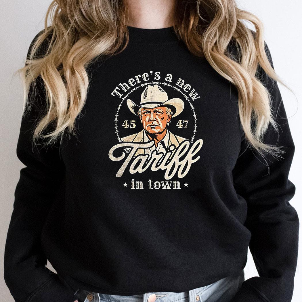 By sporting the “Trump There’s A New Tariff In Town 45 47” shirt, you align yourself with a movement that promotes economic growth and national pride. It’s an opportunity to show your support while also sparking interest and dialogue around important issues that affect us all. Don’t miss out on the chance to make a statement—grab yours today and wear it with pride!.