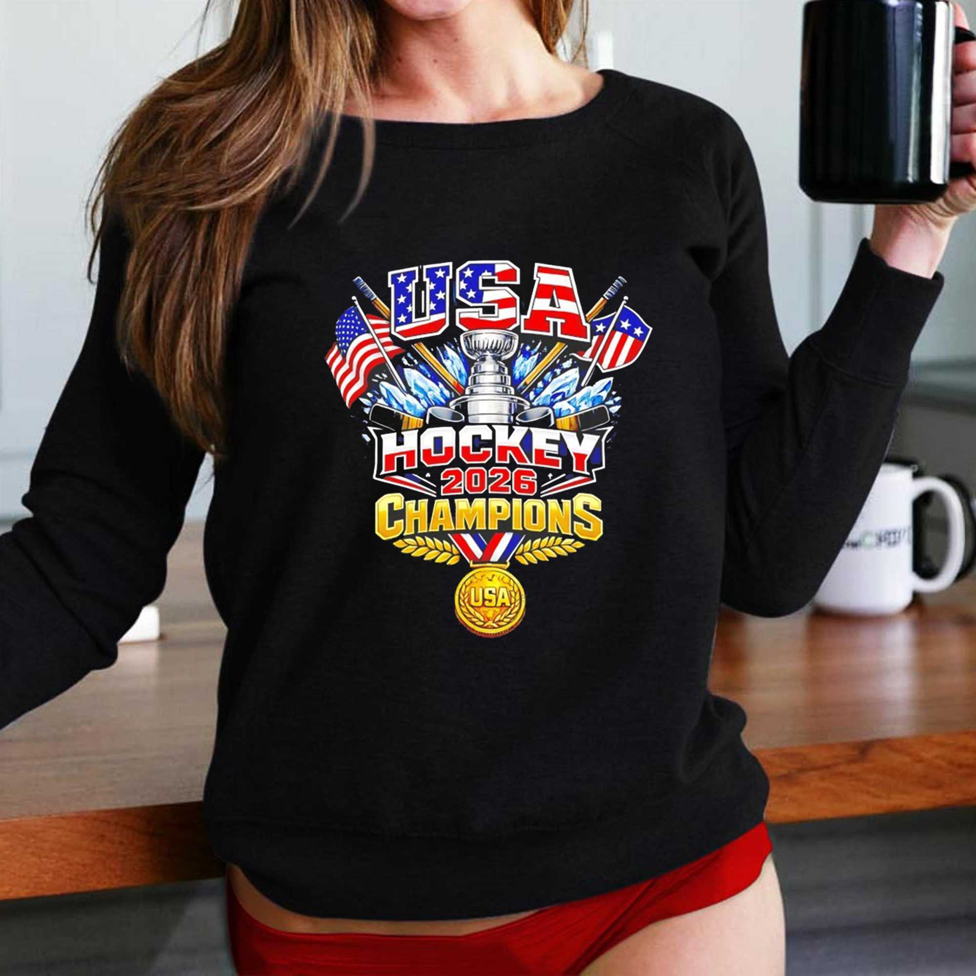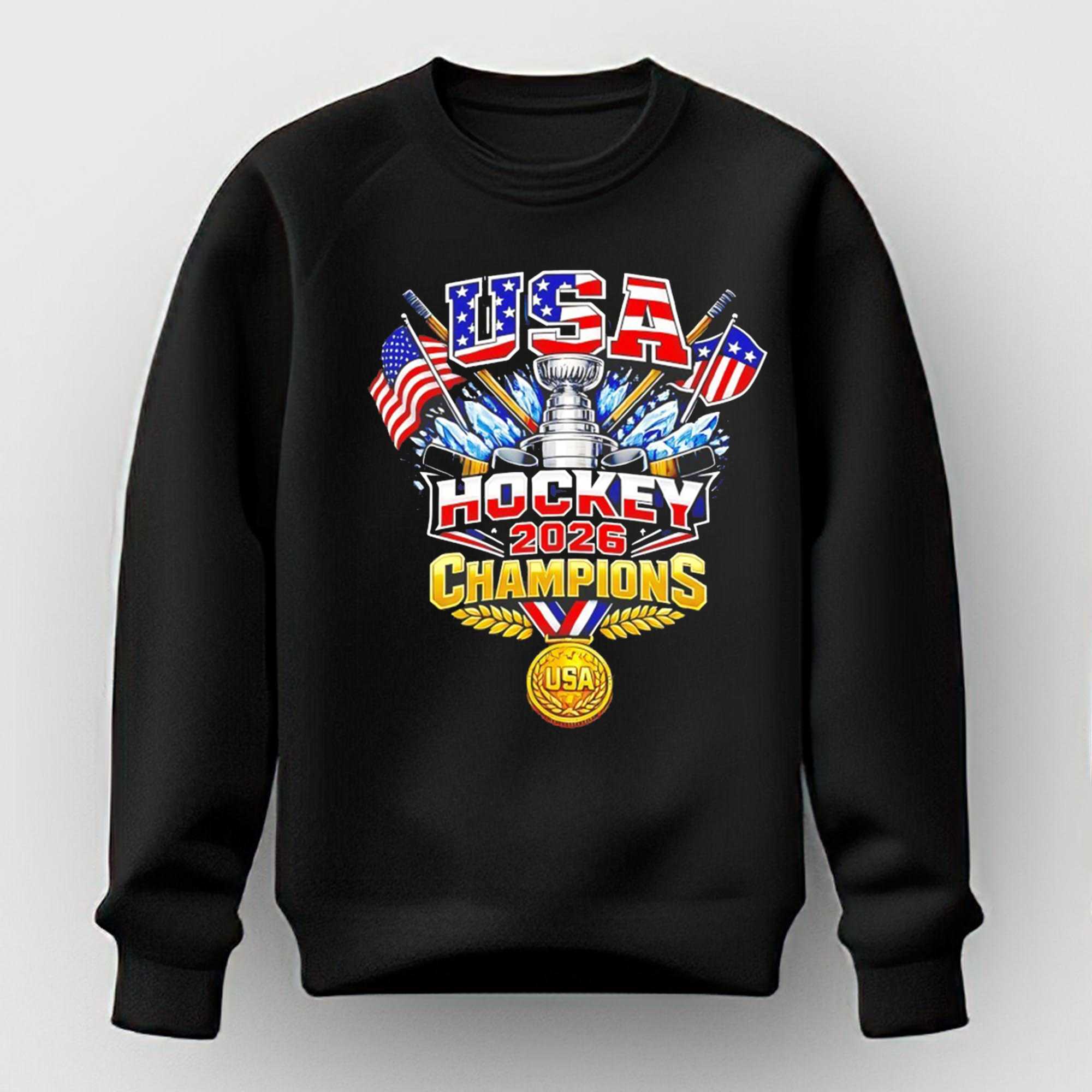 Step into the future of glory and look forward to the ultimate victory with the Usa Hockey 2026 Champions Gold Medal Tee. This design is a bold and optimistic celebration of a hypothetical future title run, featuring a massive, professional-grade graphic that honors the ambition of the Red, White, and Blue. Centered on the prestigious “2026 Champions” branding and the official gold medal motifs, the artwork utilizes a palette of shimmering silver and navy blue to create a look that is both majestic and athletic. It captures the spirit of resilience and the drive for excellence that defines the American program.