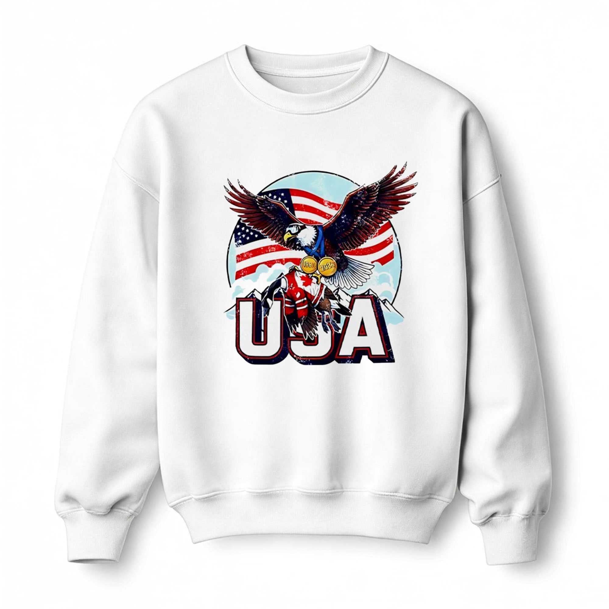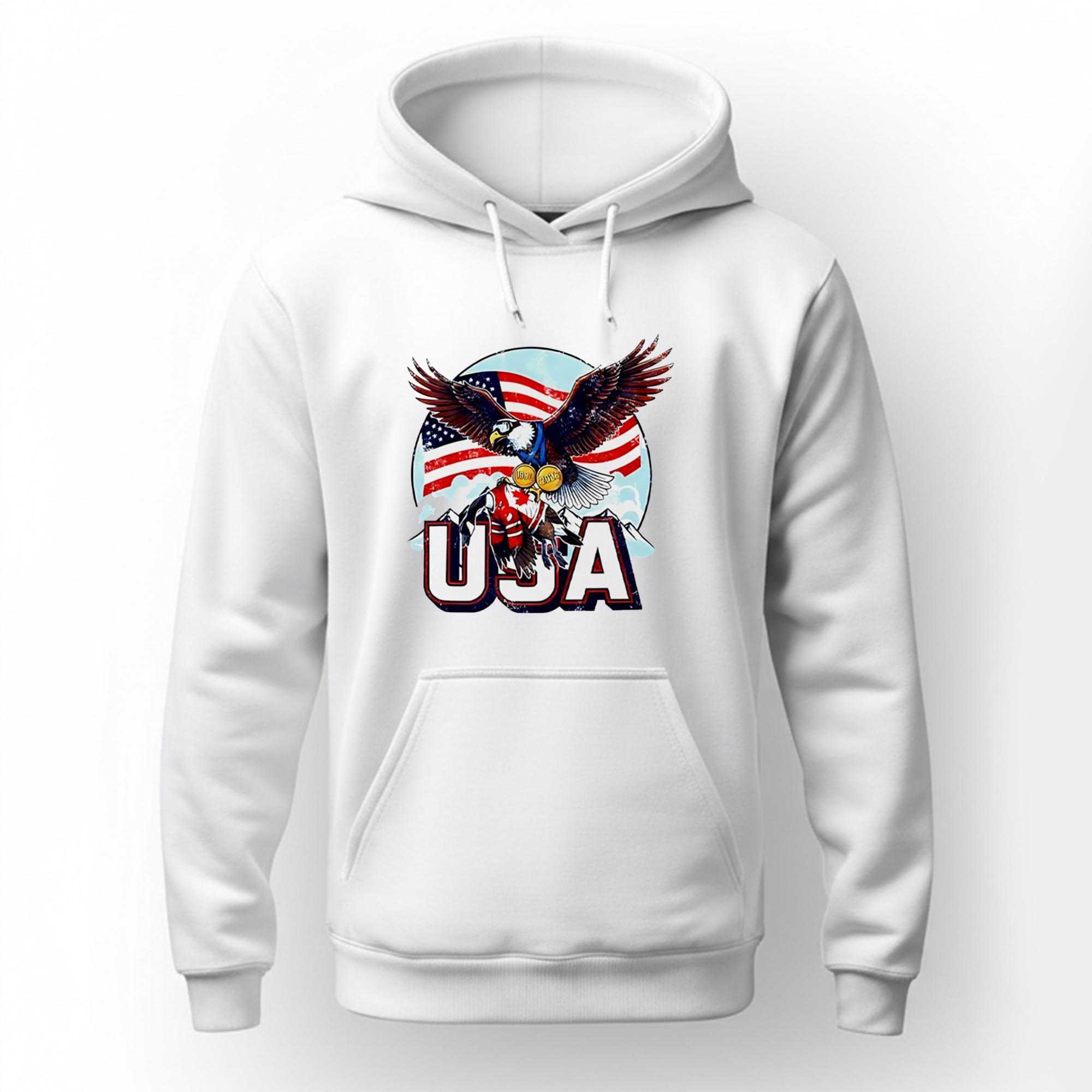 Declare the arrival of a new era on the ice with the high-octane Usa Ice Hockey Eagle Champions 2026 Tee. This design is a bold and patriotic salute to the rising dominance of American hockey, featuring the iconic figure of the national eagle mascot reimagined for the modern arena. The graphic captures the high-energy spirit of the Red, White, and Blue, utilizing a vibrant palette of championship gold and navy that pops vividly against the white fabric. The “2026 Champions” slogan is rendered in a sharp, authoritative font, designed for those who believe the gold belongs home.