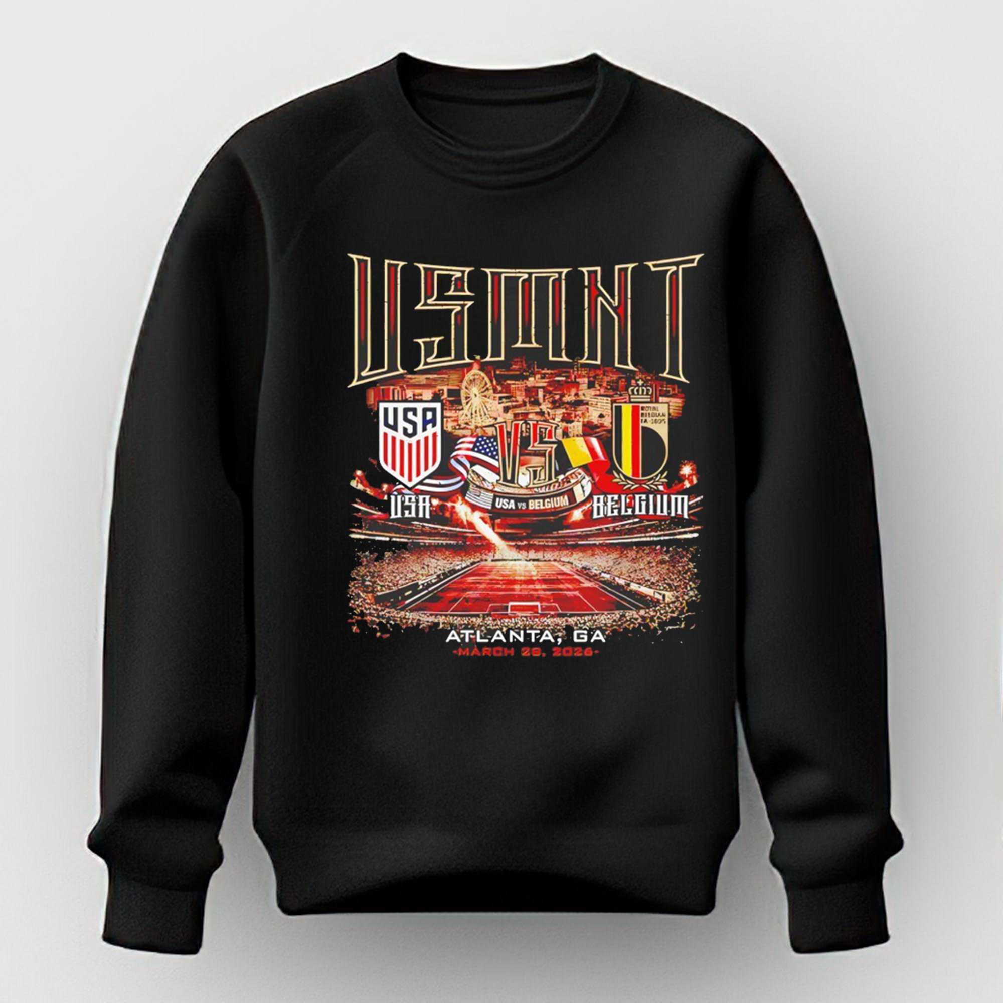 Celebrate the absolute thrill of the beautiful game on the world stage with the high-octane Usmnt Vs Belgium 2026 Match Up Tee. This design is the ultimate piece of memorabilia for the 2026 World Cup campaign, featuring a sharp and authoritative graphic of the legendary matchup. Centered on the official team crests and the location branding, the artwork captures the energy, the skill, and the collective roar of a fan base that lives for the international stage. The use of traditional patriotic red, white, and blue creates a look that is both professional and intensely athletic, mirroring the intensity of a qualification match.
