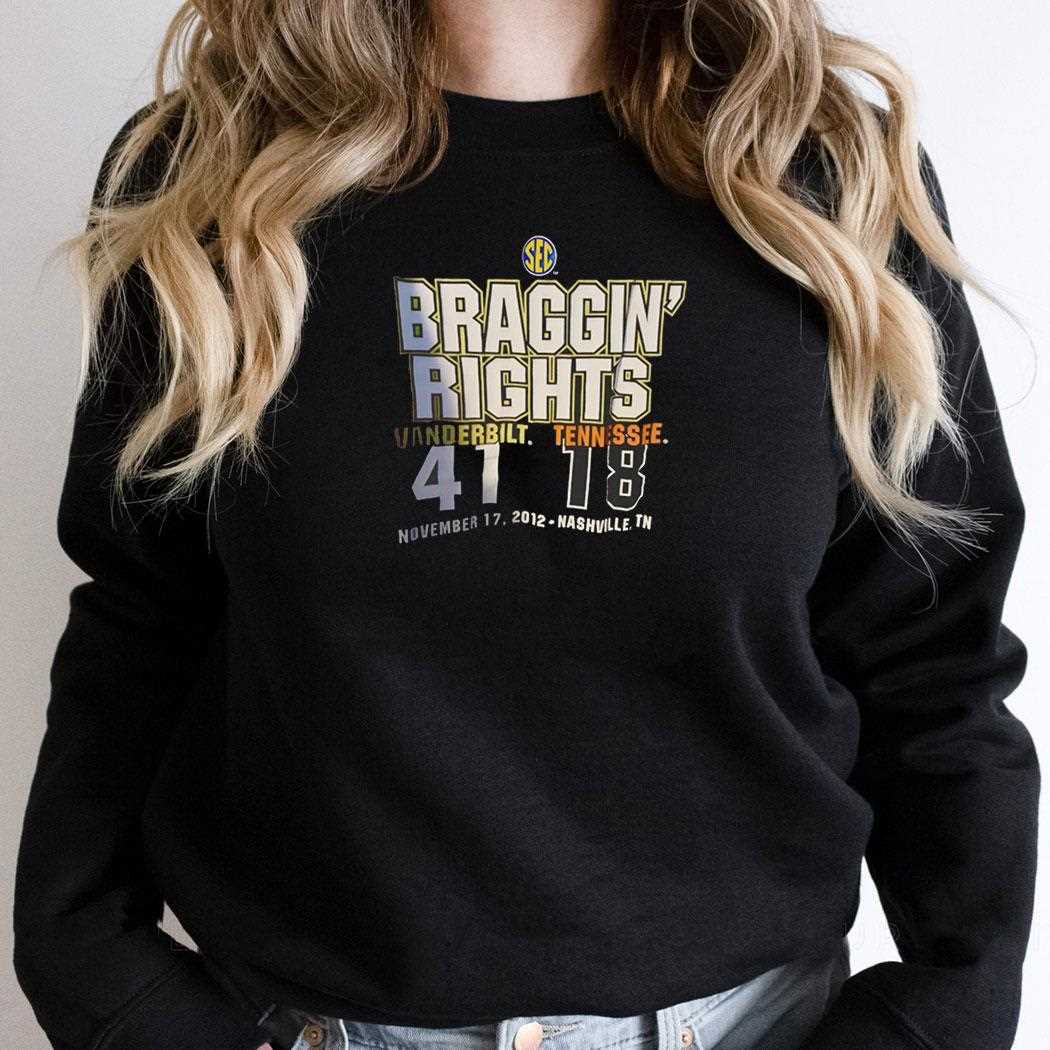 Secure your piece of history and order the Vanderbilt Commodores Vs Tennessee Volunteers Braggin Rights 2012 Shirt today!. T-shirt !