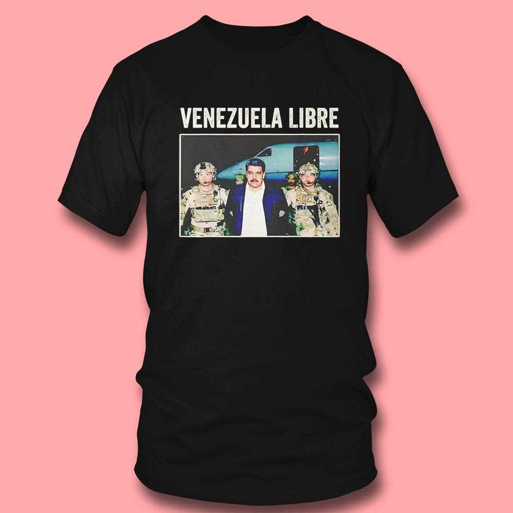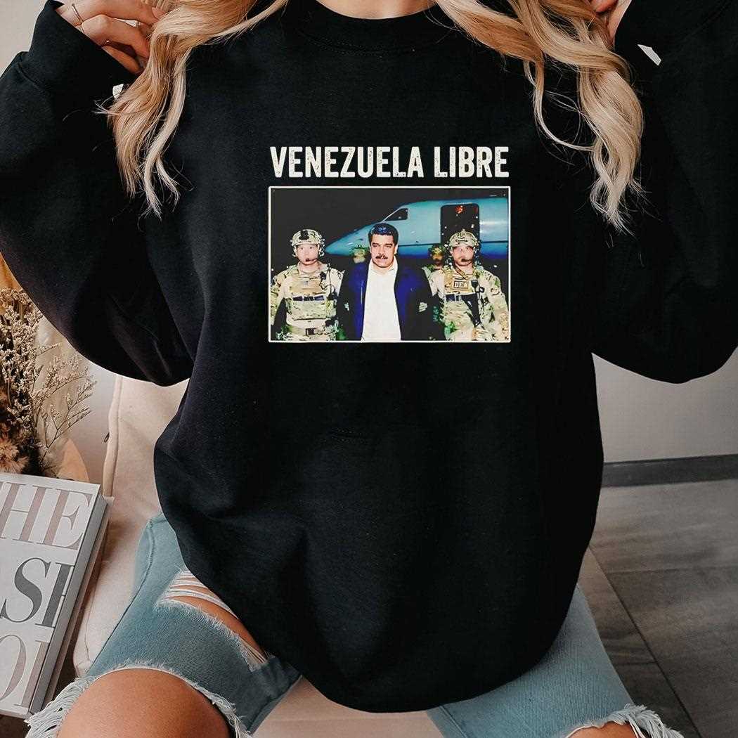 Express your political convictions and support for democracy with this “Venezuela Libre” statement piece. The design features a high-impact, news-style graphic depicting a significant moment of change, calling for a free and liberated Venezuela. The bold typography and stark, high-contrast imagery create a powerful visual that demands attention and sparks meaningful conversation. This shirt is for the activists, the global citizens, and the supporters of sovereignty who want to wear their message of hope. Crafted from a durable, pre-shrunk cotton blend, it provides a reliable fit and all-day comfort for rallies or community gatherings. The message is clear, uncompromising, and printed with long-lasting, eco-friendly inks. Whether you’re part of the diaspora or an ally of the movement, this tee is a wearable petition for justice. Make your voice heard and stand for liberty—get your Venezuela Libre Nicolas Maduro Captured Tee today!. T-shirt !
