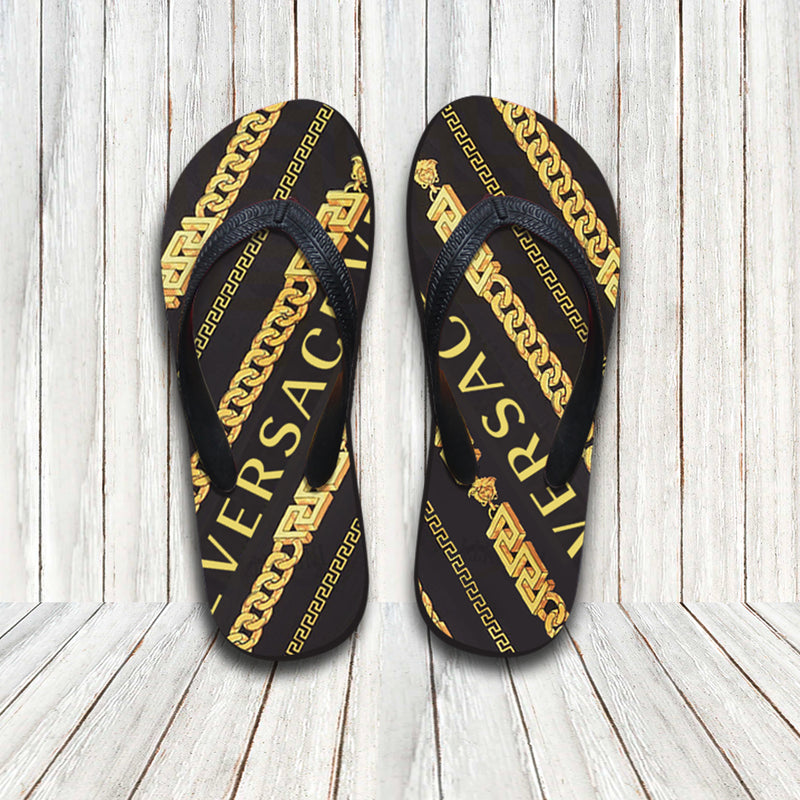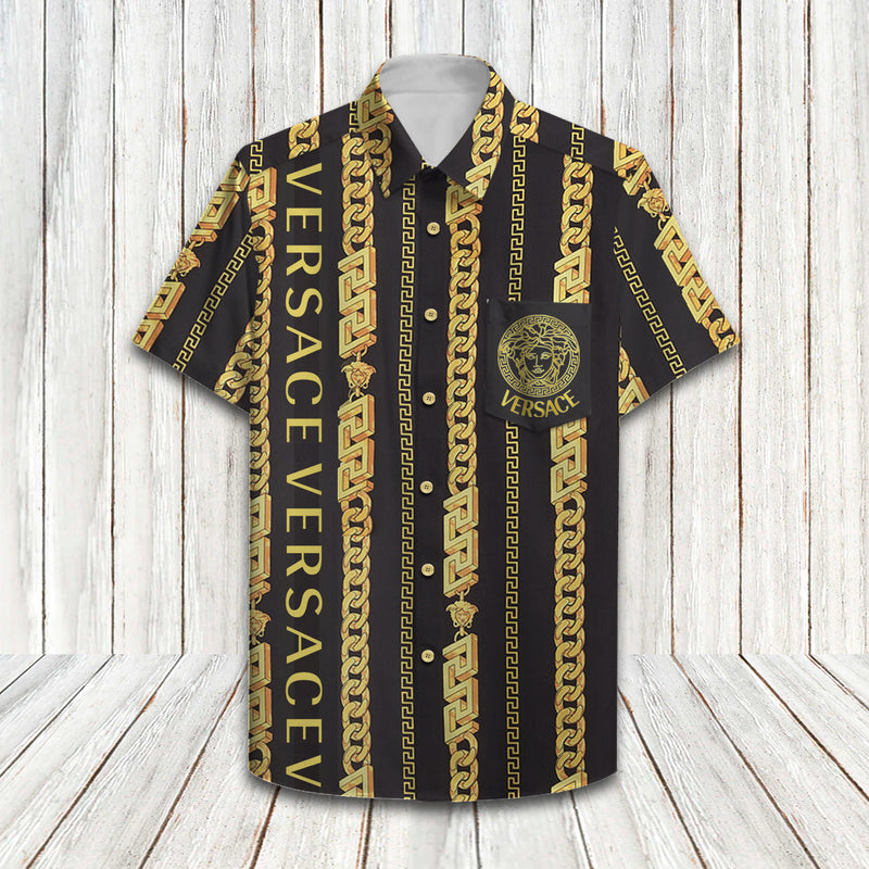 Versace Chain Pinstripe Hawaiin Shirt Shorts and Flip Flops Combo Suitable for special occasions such as Christmas, birthday, celebration, housewarming gift.