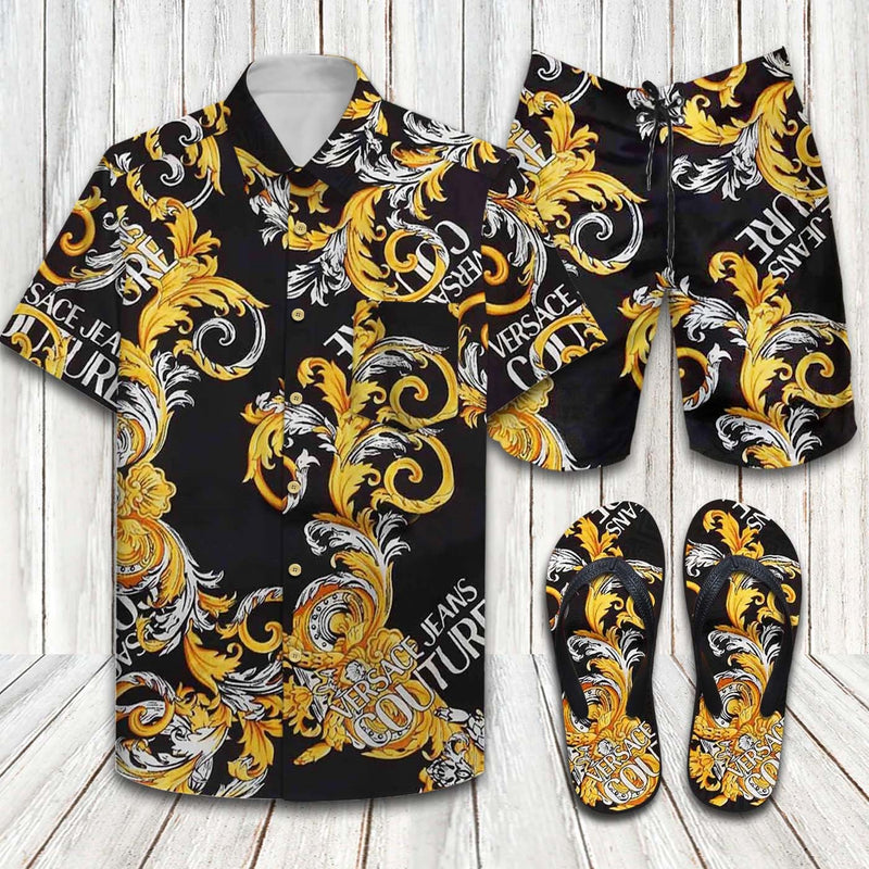 Versace Jeans Couture Brand Luxury Brand Hawaiin Shirt Shorts and Flip Flops Combo Suitable for special occasions such as Christmas, birthday, celebration, housewarming gift.