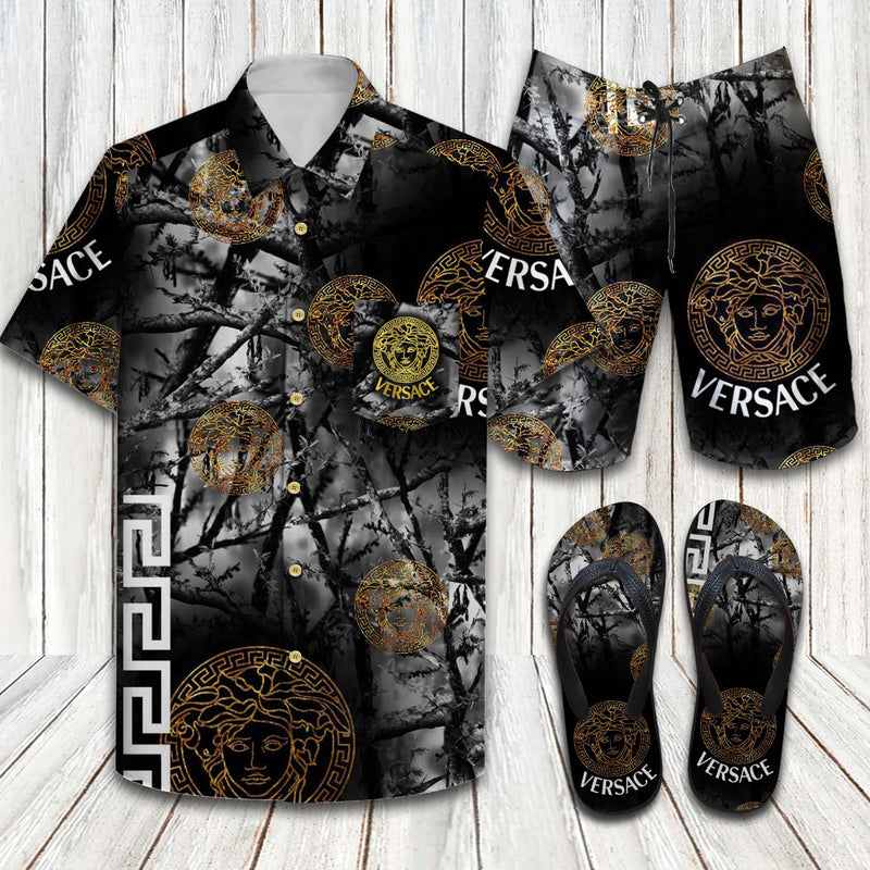 Versace Jungle Black Limited Hawaiin Shirt Shorts and Flip Flops Suitable for special occasions such as Christmas, birthday, celebration, housewarming gift.