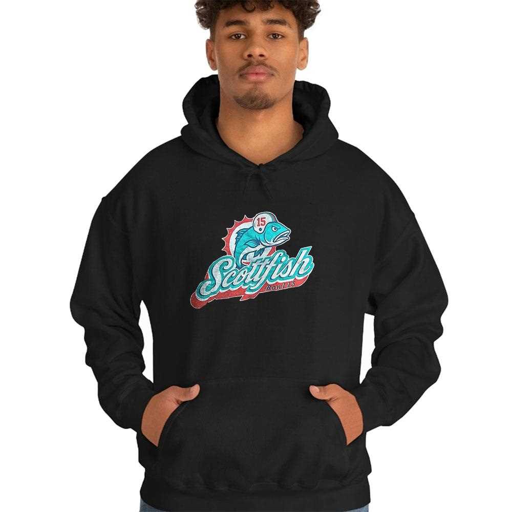 Score a style touchdown with this awesome, retro-inspired “Scottfish” football t-shirt. Featuring a classic, distressed logo of a fish wearing a football helmet, this design looks like authentic vintage gear from a team you wish was real. It’s a unique and fun piece for any fan of old-school sports aesthetics. Get in the game! Whether you’re a fan of vintage sportswear or just love a unique, creative logo, this tee is an instant classic. Add this champion of a shirt to your lineup today..