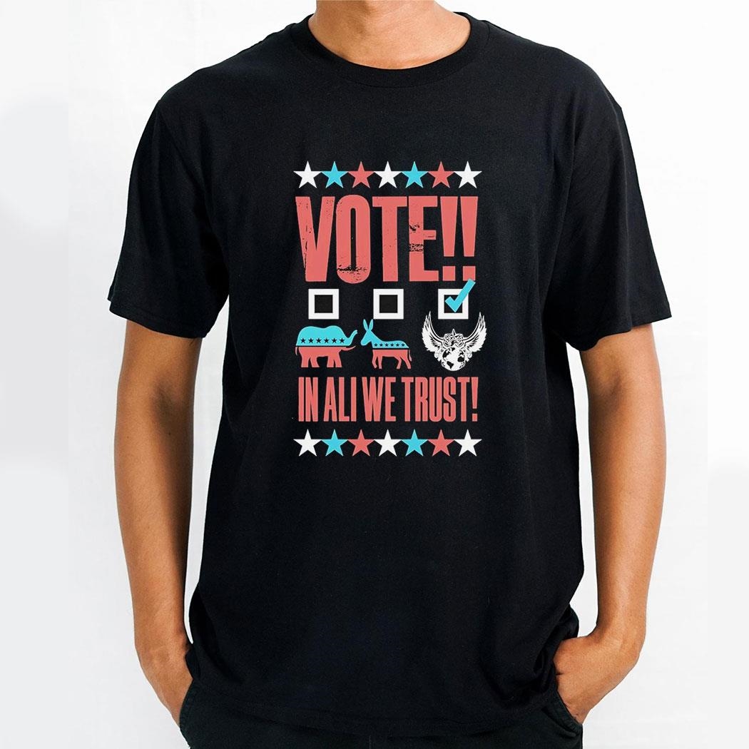 So, if you believe in the future of this great nation and want to show your support for the leaders who are fighting to protect its ideals, then the “Vote In Ali We Trust USA” shirt is the perfect choice for you. Wear it with pride and let your voice be heard!.