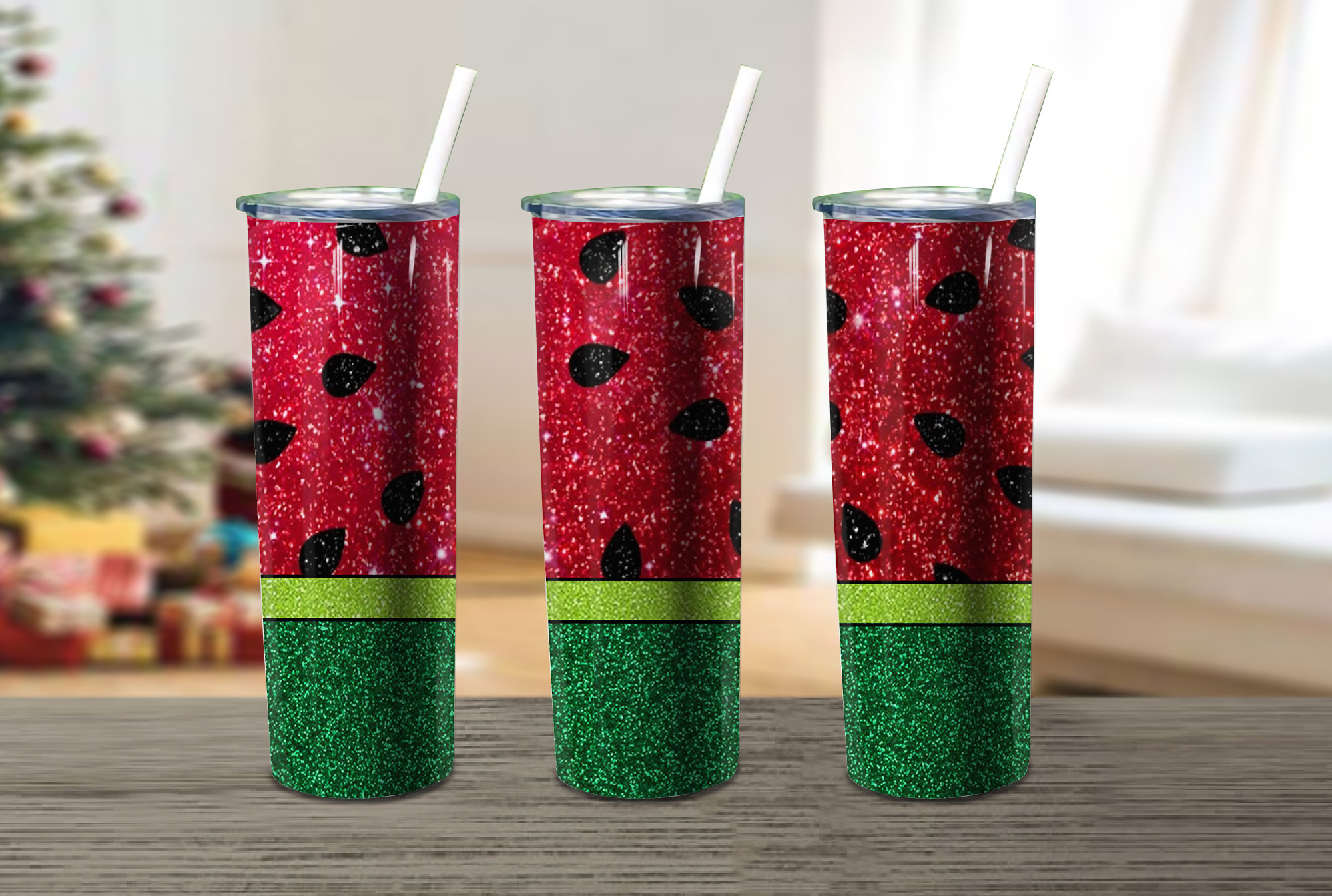 Watermelon Glitter Tumbler Christmas Skinny Tumbler
