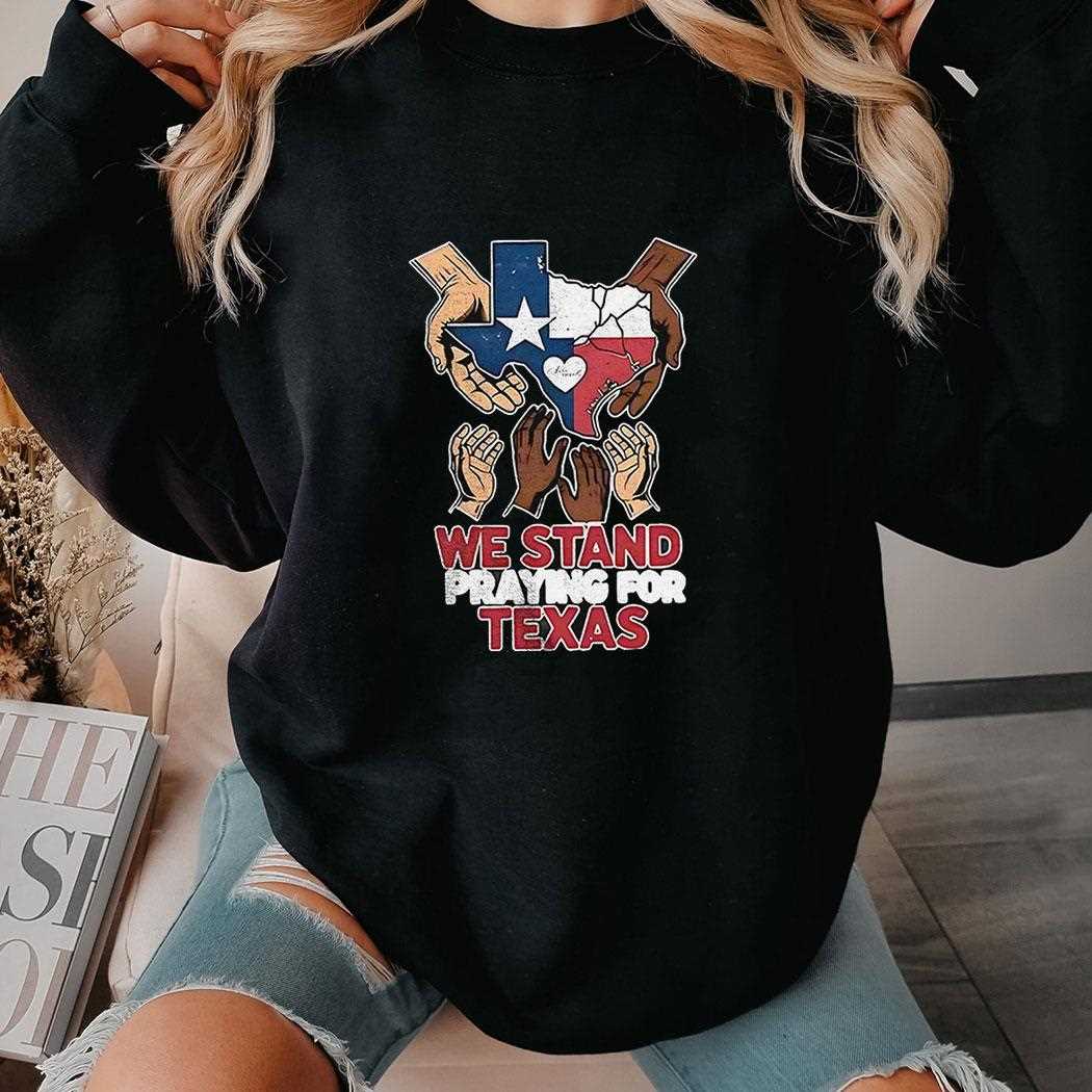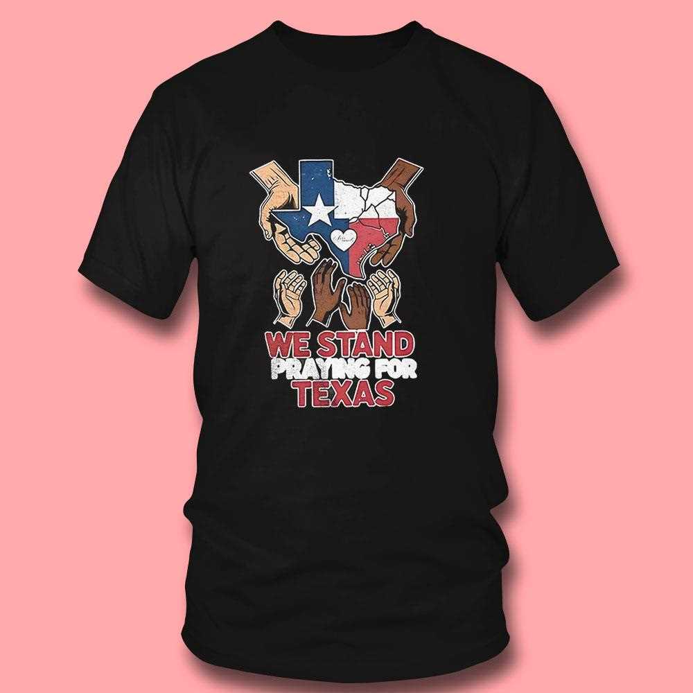 Show your solidarity and support for the Lone Star State with this powerful shirt. The design features a collection of diverse hands holding the state of Texas, with the heartfelt message, “We Stand Praying For Texas.” It’s a symbol of unity, hope, and compassion in challenging times. Stand with Texas. Wear your support and send a message of hope. Order your shirt now..