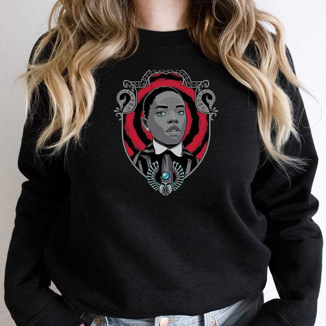 Rule Nevermore Academy with the siren-like style of its queen bee, Bianca Barclay. This stunning tee features a regal, portrait-style graphic of Bianca, framed by intricate details that reflect her captivating and powerful nature. It’s a bold tribute to one of Nevermore’s most compelling students. Ready to make some waves? Channel your inner Bianca and command the attention you deserve. Add this enchanting shirt to your wardrobe today!.