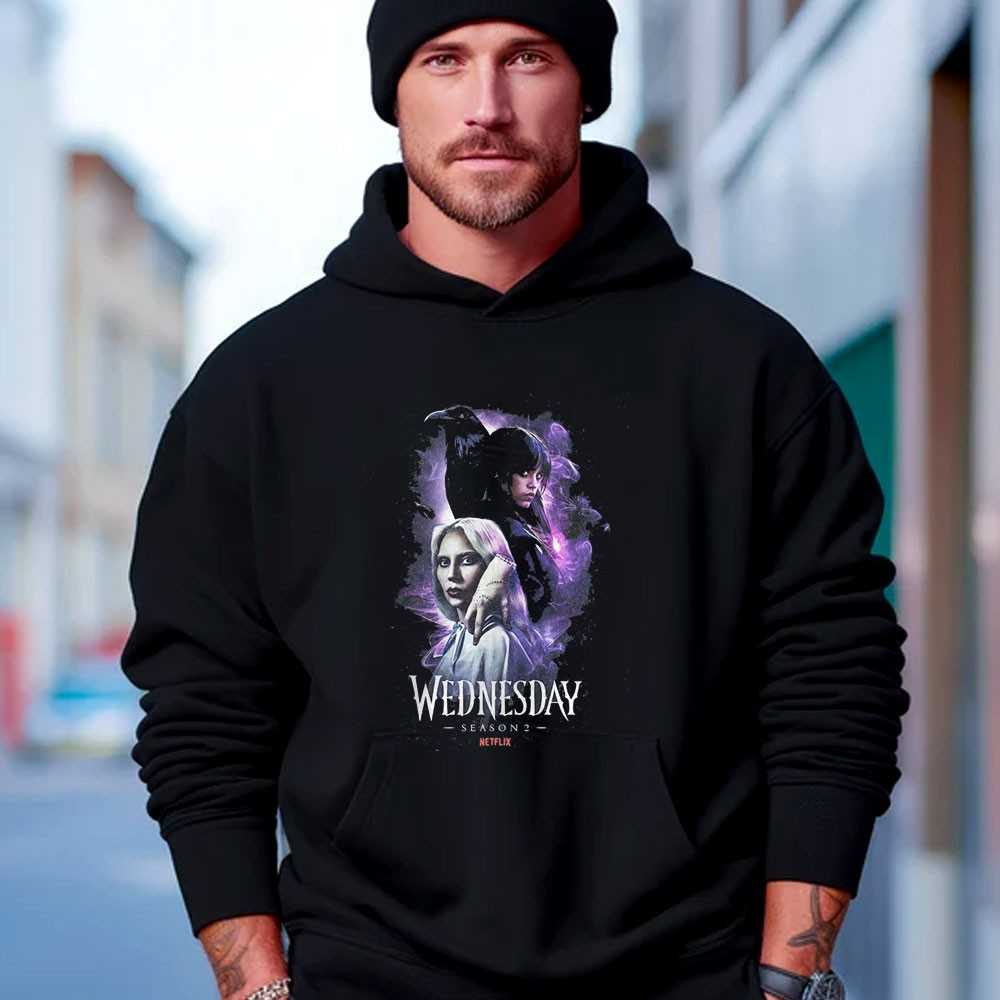 Be among the first to celebrate the anticipation of what’s next for everyone’s favorite macabre teen with our “Wednesday Addams Season 2 Poster” Tee. This design is a must-have for devoted fans eagerly awaiting the next chapter of her story. Made from soft, high-quality cotton, this tee offers a comfortable fit for everyday wear. The striking graphic mirrors a potential poster design for the upcoming second season, featuring Wednesday in a compelling new pose or setting that hints at future mysteries and adventures. The bold imagery and stylistic choices make this tee a collector’s item, capturing the excitement and allure of Wednesday’s continuing journey.. T-shirt !