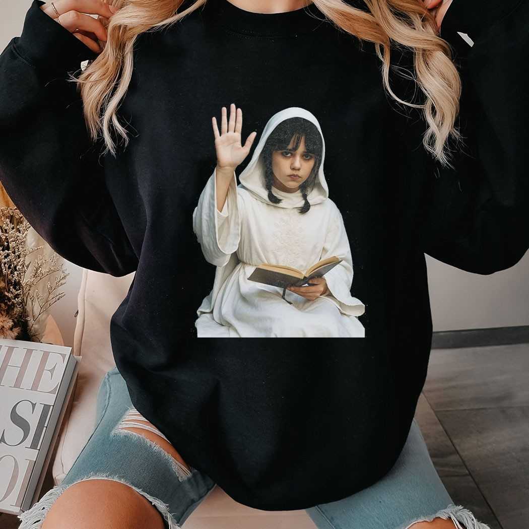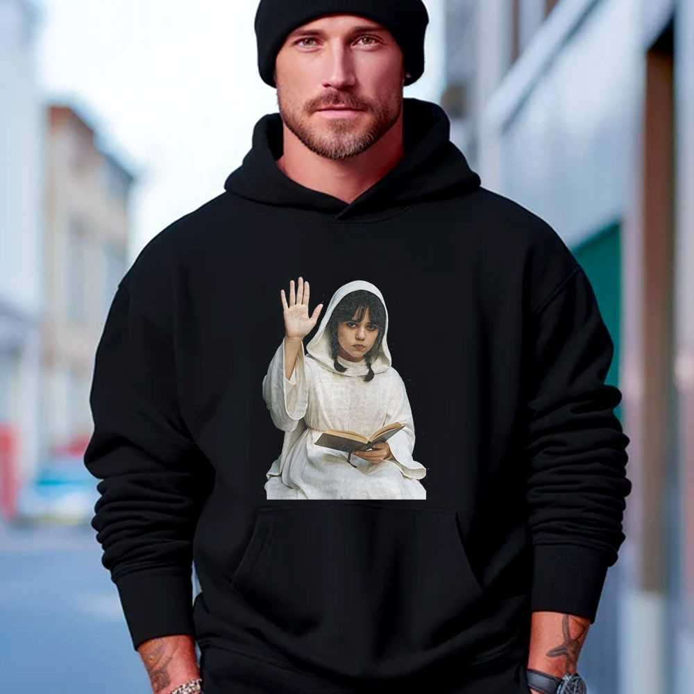 Discover a surprising twist on Wednesday Addams’ character with our “White Hooded Monk” Tee. This intriguing design offers a unique and unexpected portrayal, blending her signature darkness with an almost monastic solemnity. Crafted from soft, breathable cotton, this tee provides a comfortable fit that’s both distinctive and stylish. The captivating graphic features Wednesday in a white hooded garment, evoking a sense of mysterious contemplation or perhaps a hidden society. This unconventional imagery challenges perceptions and highlights the depth and versatility of her character. It’s a truly unique piece for those who appreciate the unexpected and the beautifully strange.. T-shirt !