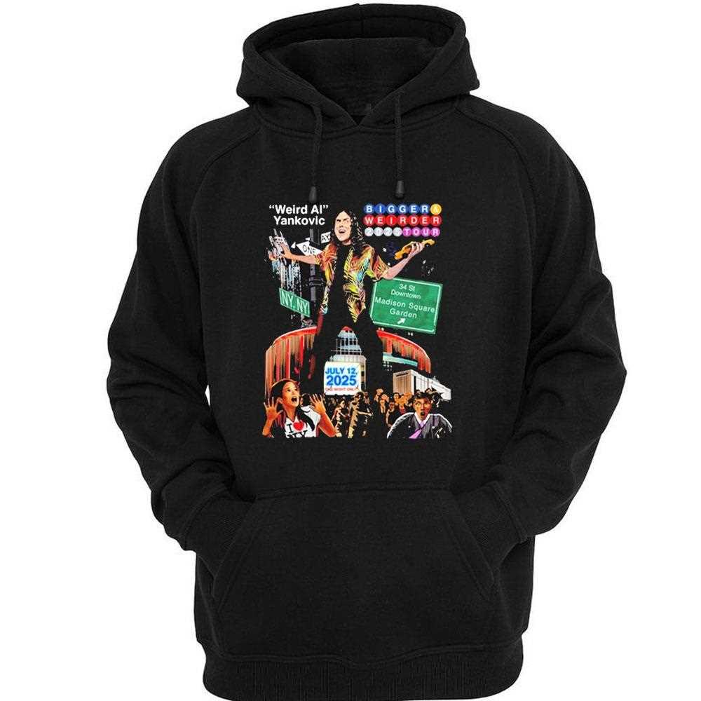 Get ready to get weird! This epic t-shirt is a souvenir from “Weird Al” Yankovic’s (future) 2025 “Bigger & Weirder” tour, with a stop at the legendary Madison Square Garden. The vibrant, chaotic, and beautifully bizarre design is a perfect representation of the king of parody and his incredible, high-energy live shows. It’s a must-have for any fan of the musical genius.