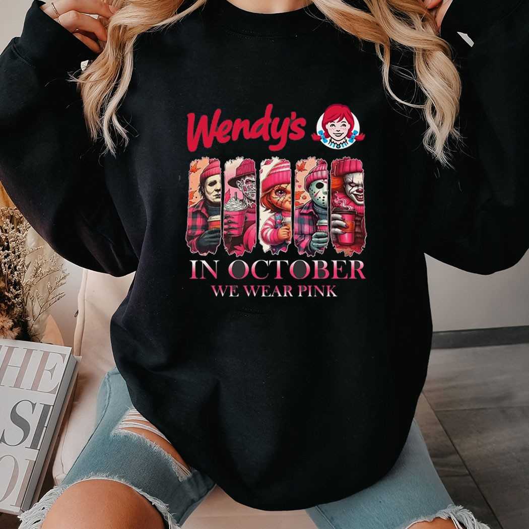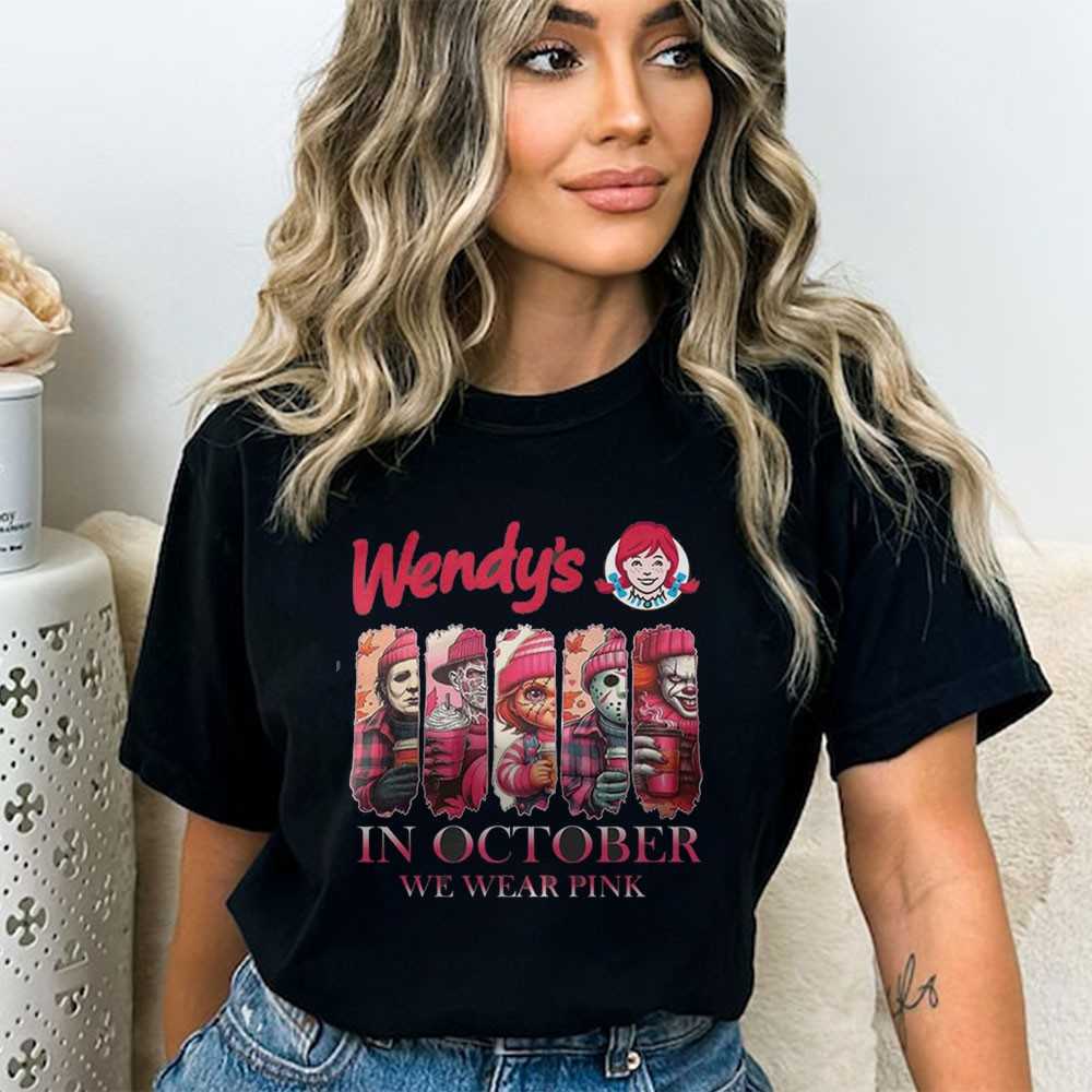 Wendy’s Horror Characters In October We Wear Pink Tee