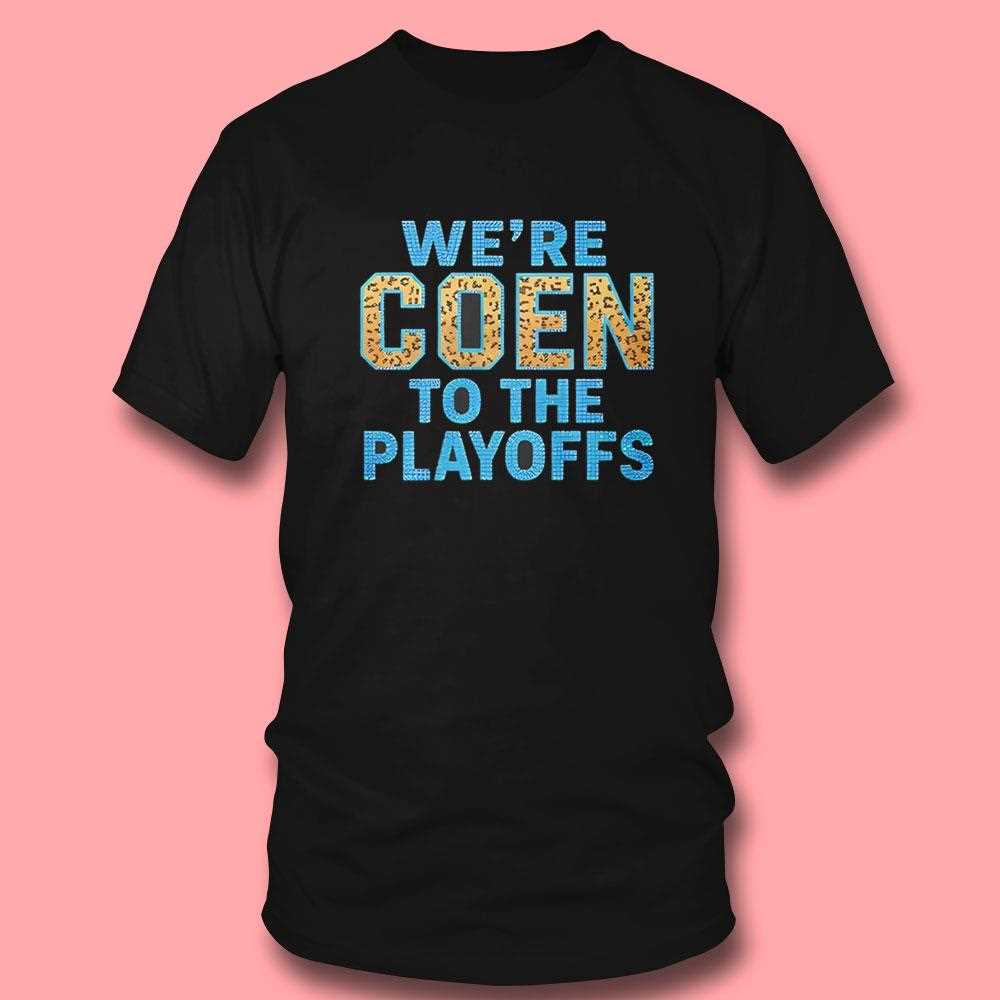 Celebrate a historic run with the ultimate playoff-bound rally shirt! This clever design utilizes a play on words to announce that the team is “Coen” all the way to the post-season. Featuring a vibrant, textured graphic and high-energy typography, it captures the excitement and passion of a fan base on the edge of glory. The color scheme is bright and celebratory, making it the perfect gear for high-stakes games and victory parties. Crafted from a high-performance, breathable cotton blend, this tee keeps you cool when the pressure is on. The high-definition screen print is designed to stay vibrant through every round of the playoffs. Whether you’re a long-time supporter or newly inspired by the team’s success, this shirt is a symbol of hope and achievement. Wear it as a badge of honor as the road to the championship begins. Join the march to the post-season—grab your Were Coen To The Playoffs Tee today and cheer on the win!. T-shirt !