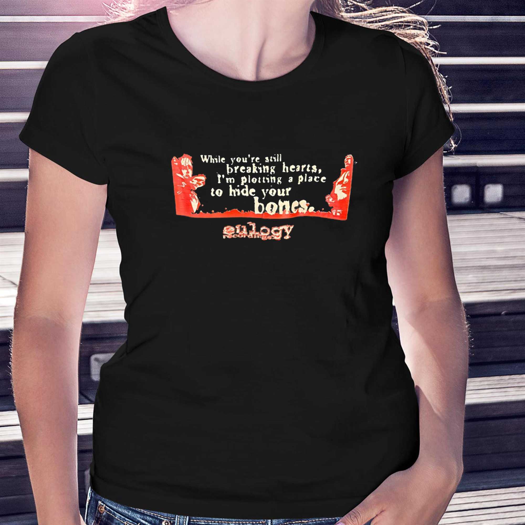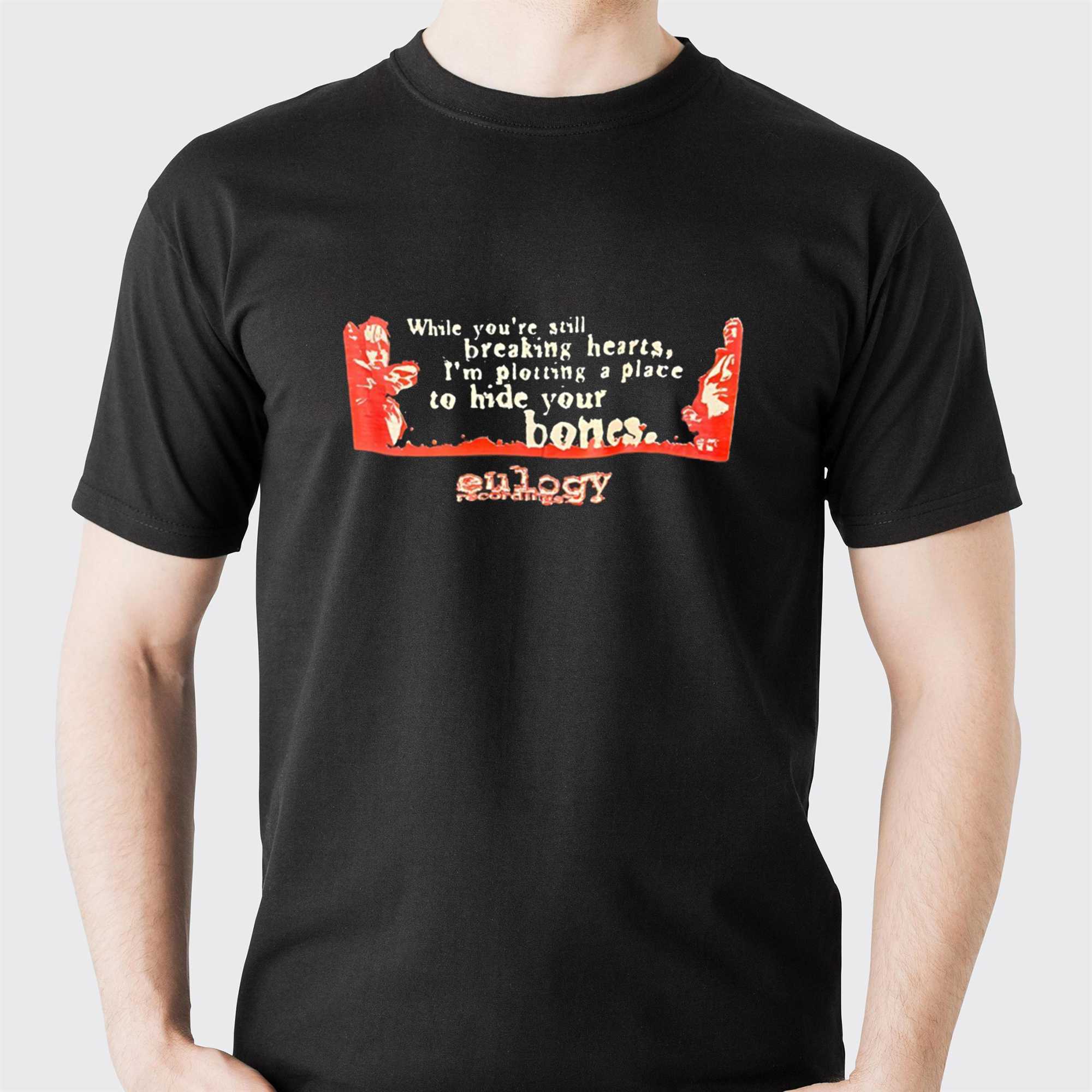 White Youre Still Breaking Hearts Im Plotting A Place To Hide Your Bones Tee