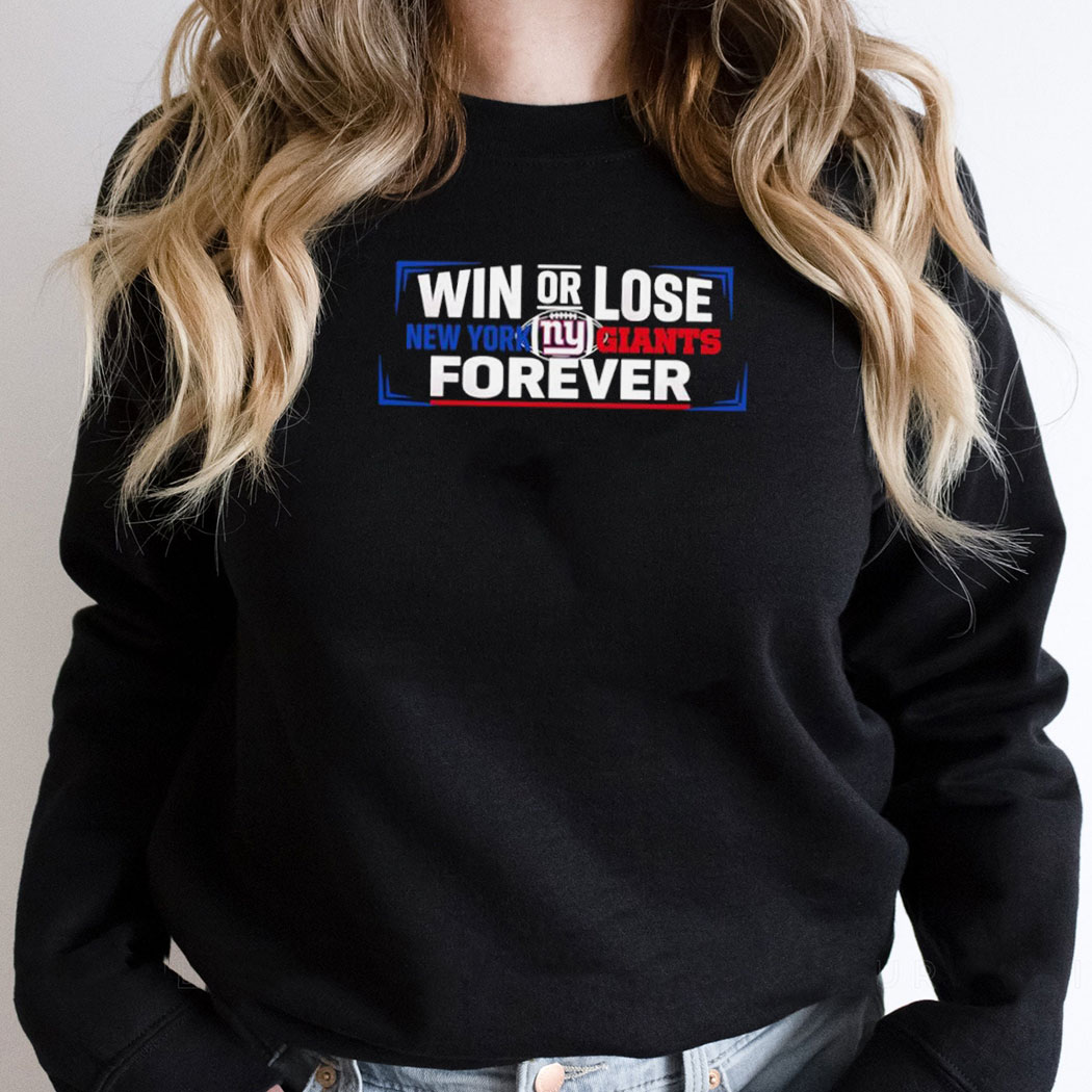 Represent the G-Men with a design that is as sturdy and timeless as New York City itself. Featuring the classic “Big Blue” color scheme, this tee uses sharp, architectural lines to frame the team name, echoing the strength of the giants of the gridiron. It’s a clean-cut, professional-looking fan garment that transitions perfectly from the sports bar to the streets of Manhattan. Wear the legacy of championships on your chest with this premium graphic. Stand tall with the G-Men and purchase your Win Or Lose New York Giants Forever Tee today!. T-shirt !