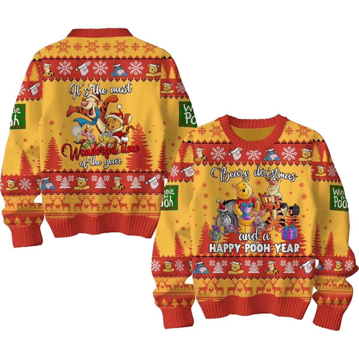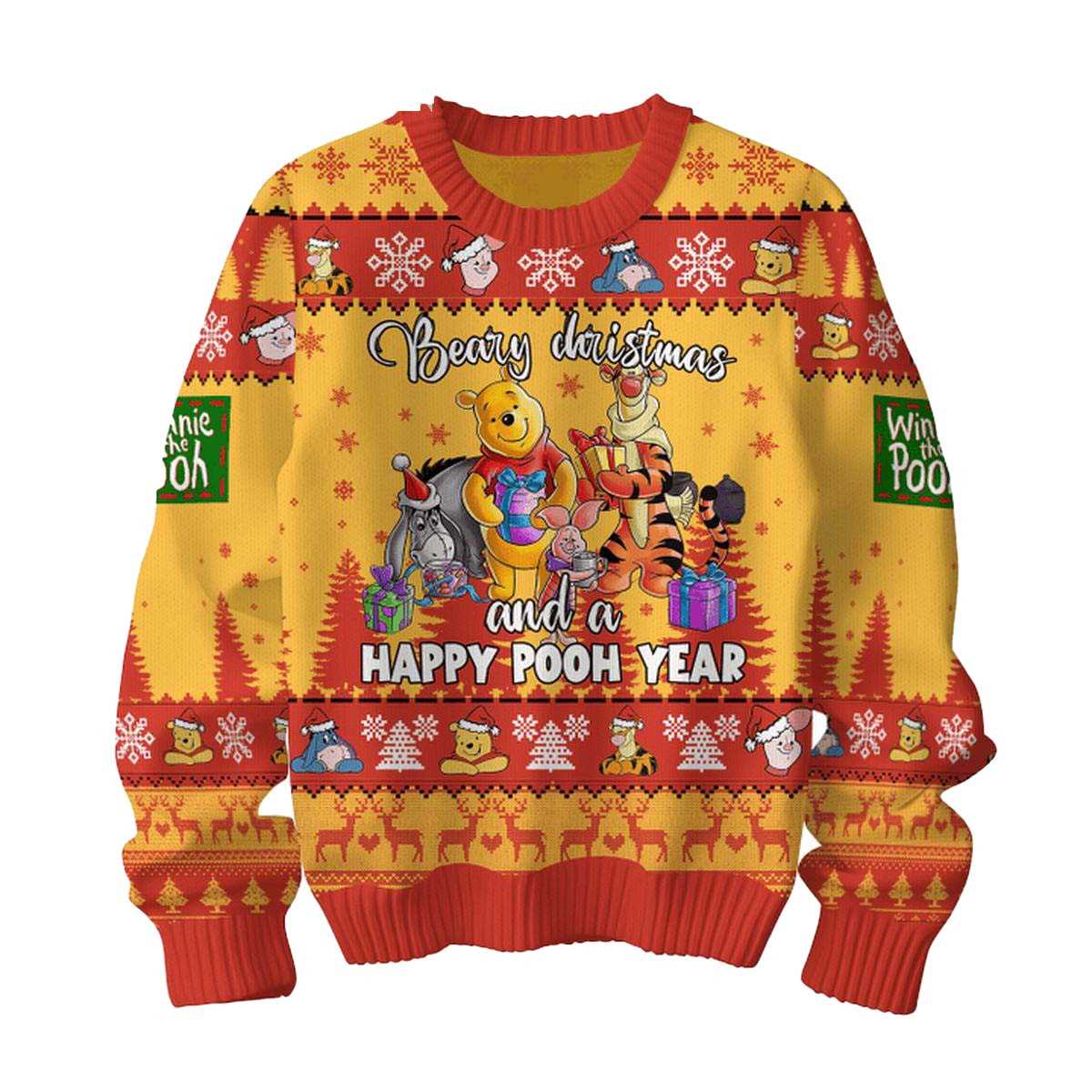 Winnie The Pooh Beary Christmas And A Happy Pooh Year 2025 Ugly Christmas Sweater