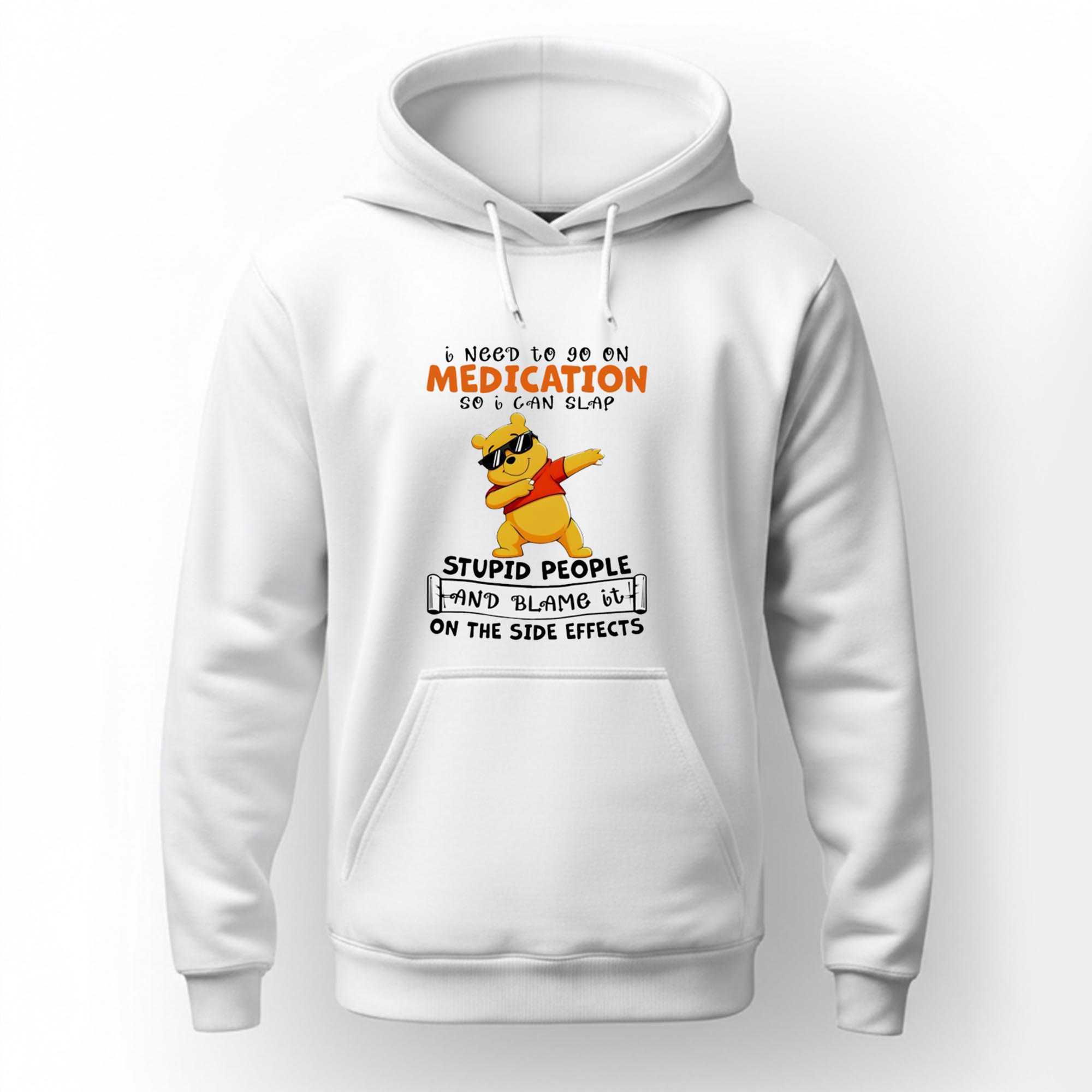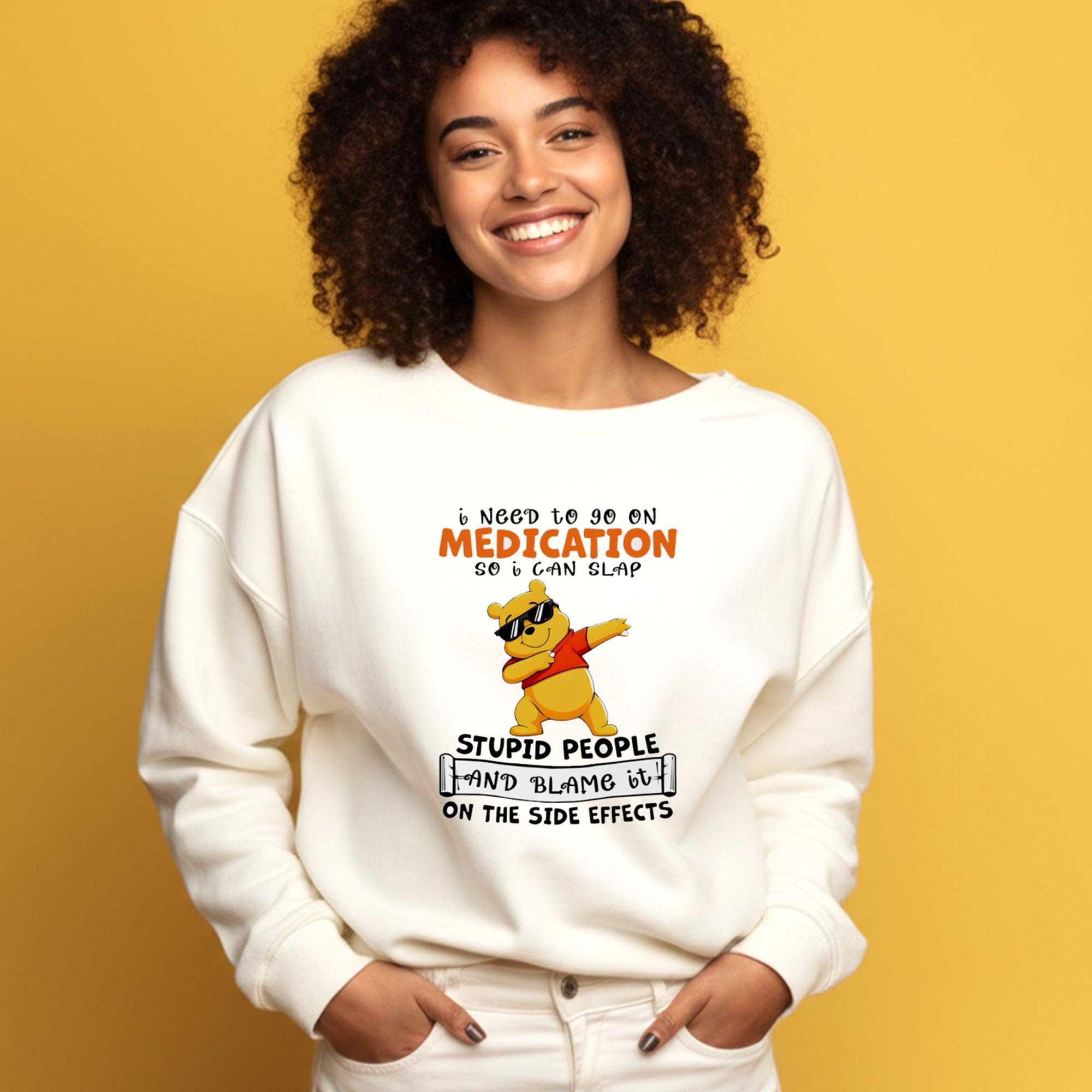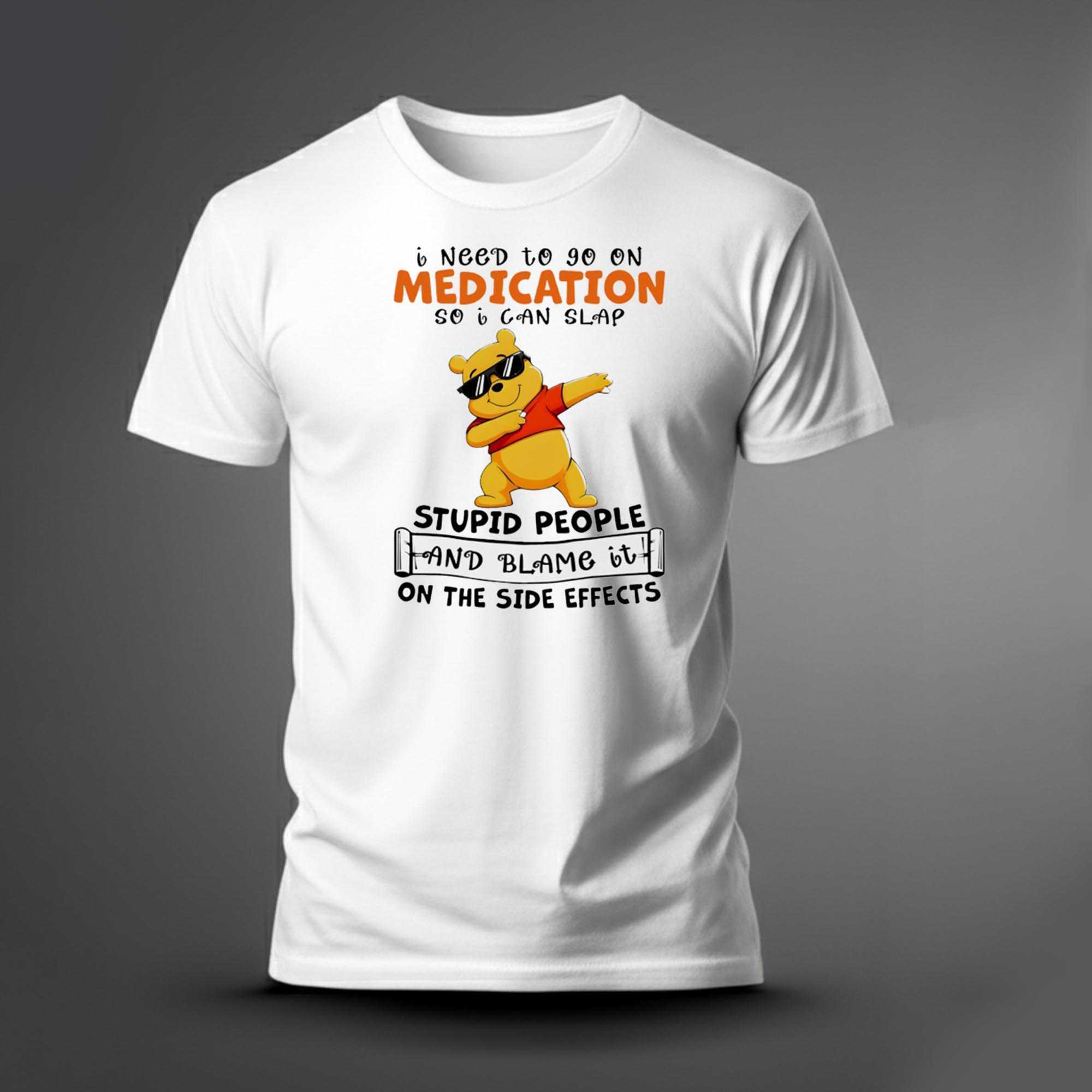 Stand out from the crowd with a design that is truly original and culturally beloved for its honesty. Show the world that you have a unique perspective and an appreciation for a good joke. Don’t hide your fire—wear it with pride and a wink. Secure your unique look and purchase the Winnie The Pooh I Need To Go On Medication So I Can Slap Tee now to stay real!