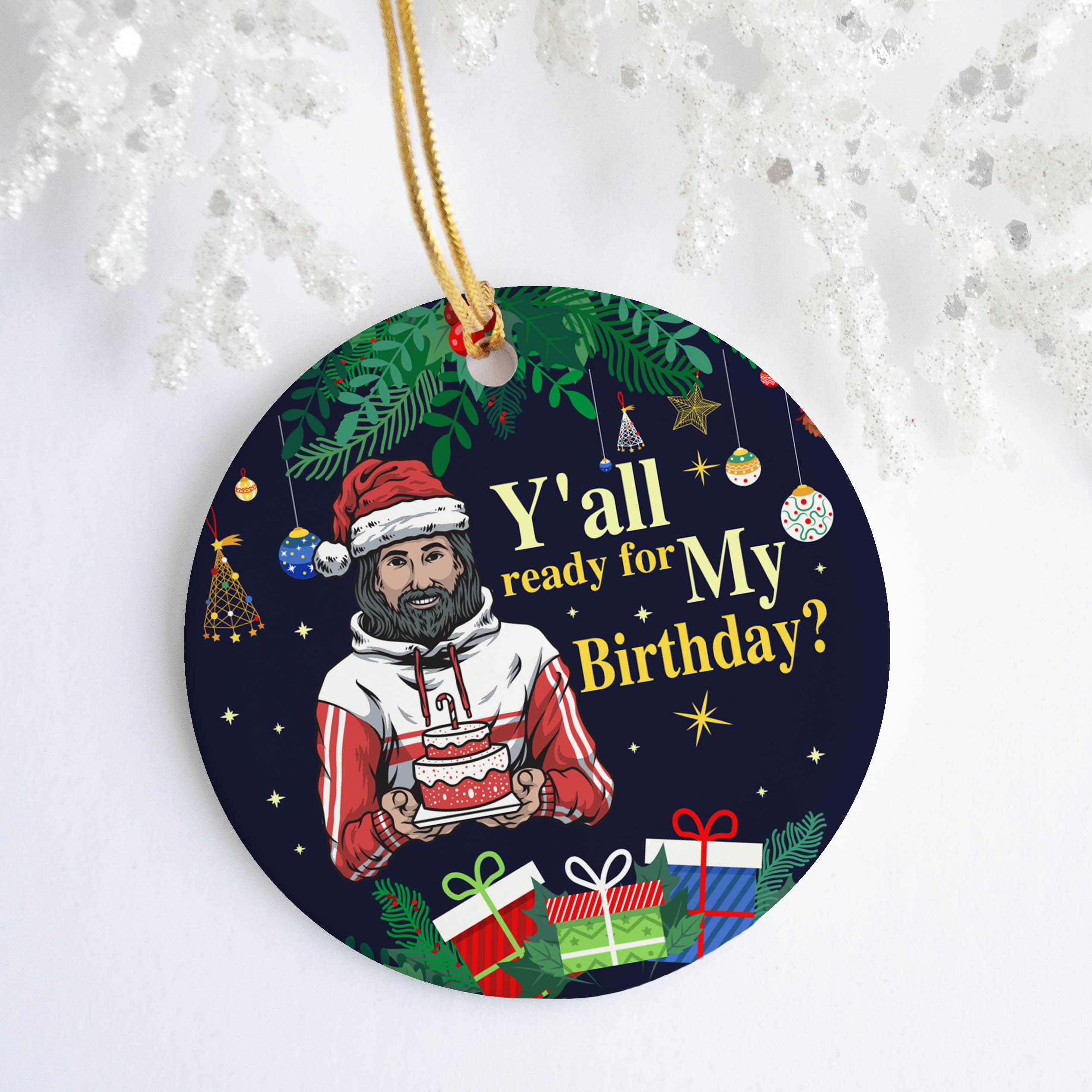 Y’all Ready For My Birthday Funny Jesus Decorative Christmas Ornament