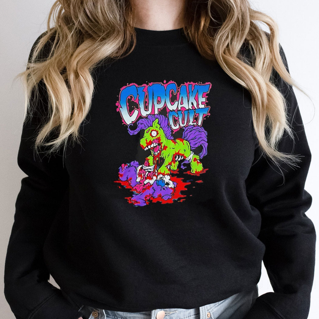 Friendship is magic… and sometimes, it’s also flesh-eating. This t-shirt, from the edgy “Cupcake Cult” brand, reimagines a My Little Pony character as a gruesome, blood-soaked zombie. It’s a perfect, dark parody for those who like their cartoons with a side of gore. The perfect blend of cute and creepy. If you like your ponies with a little bit of bite, this is the shirt for you. Get yours now!.